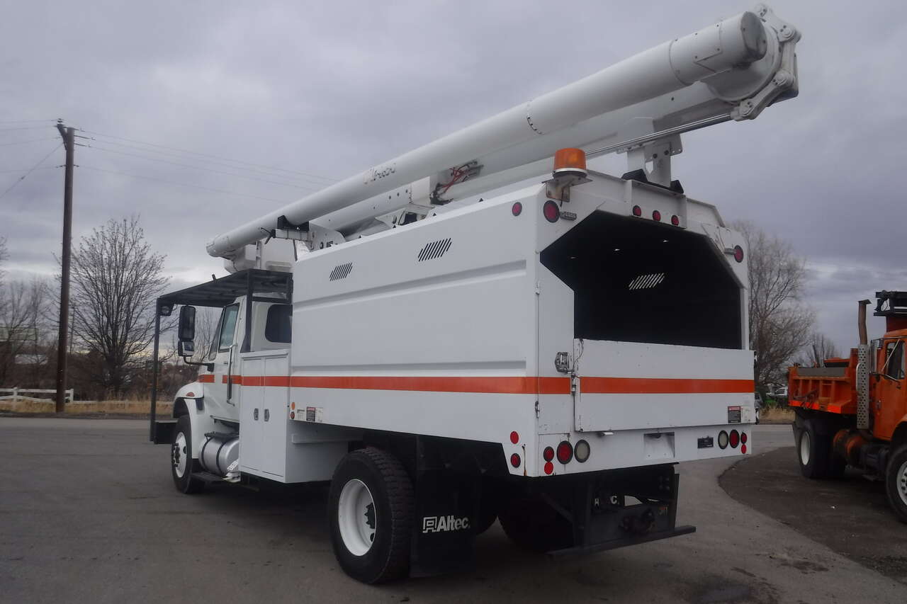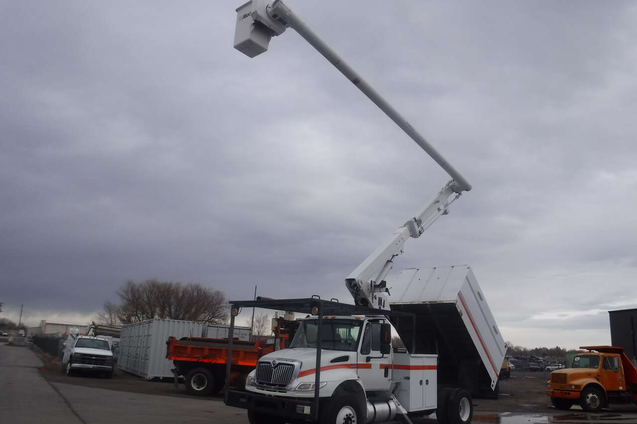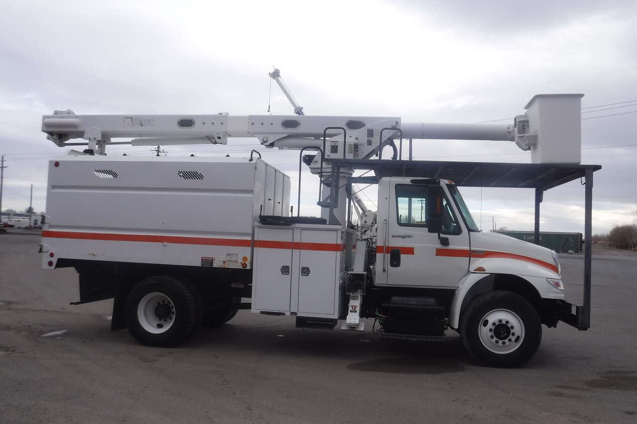 2012 IHC 4400 chipper dump truck with Altec LR56 Manlift. Atriculating overcenter with 63 FT. WH and 44.4 FT. side reach. 20,298 ACTUAL MILES and 2475 HOURS. 7,6 Liter Diesel. Allison Automatic transmission. PS,AC,CC,Jake brake. 90% 11R/22.5 tires on all wheels. RUST FREE! Spotlessly clean one owner truck from a large Southern California County that is in absolutely NEW CONDITION. Well maintained and runs, drives and operates kie a new truck. Priced at a fraction of new at $49,000.00. Located in Twin Falls Idaho. Call 208-613-0050