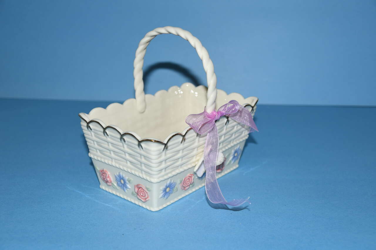 This BEAUTIFUL SPRING LENOX BASKET is about 6" x 6" x 4". There are NO CHIPS! Our home is smoke free. Questions??? Please ask. We are located in Plain City. Cash only please.