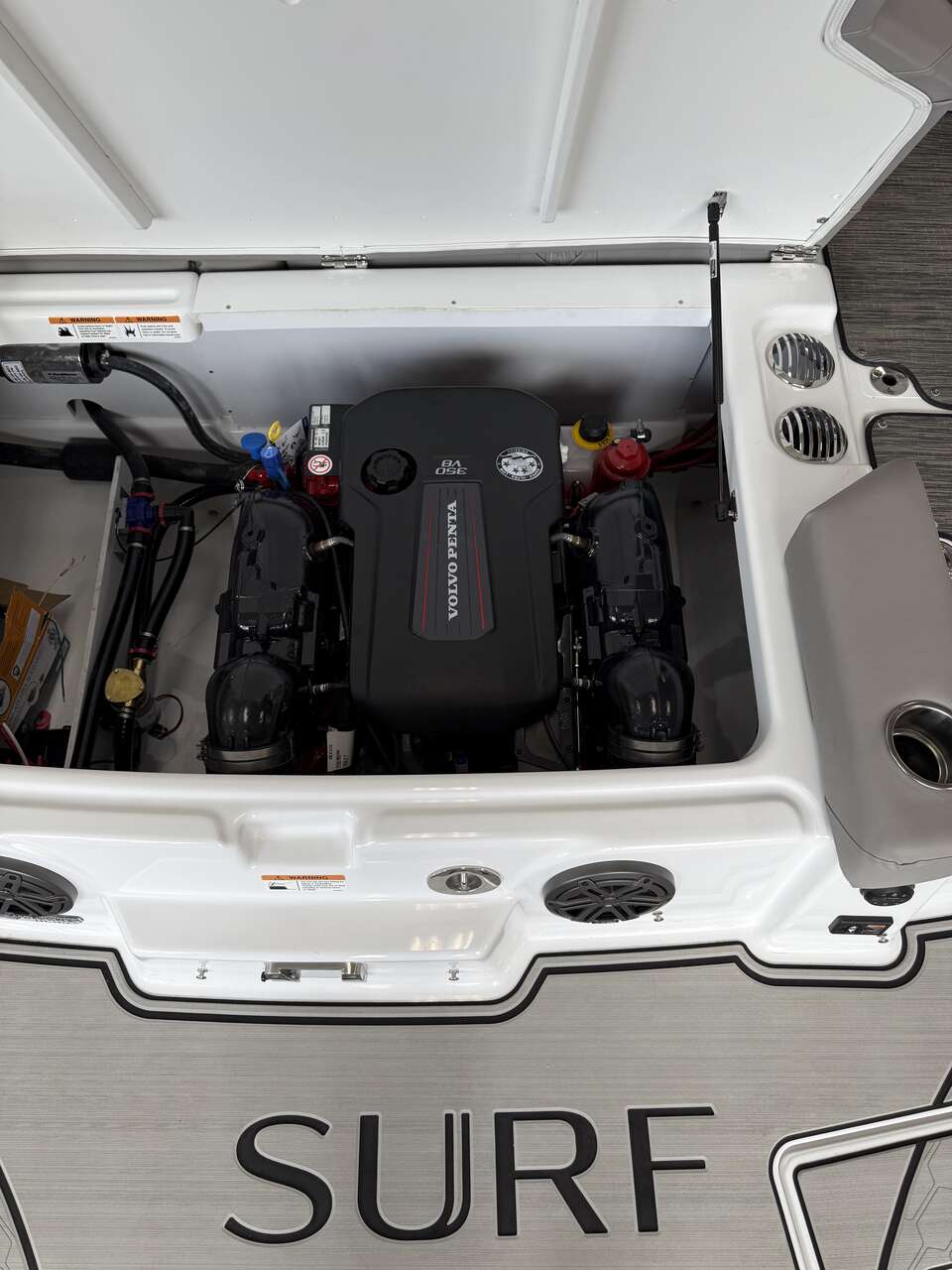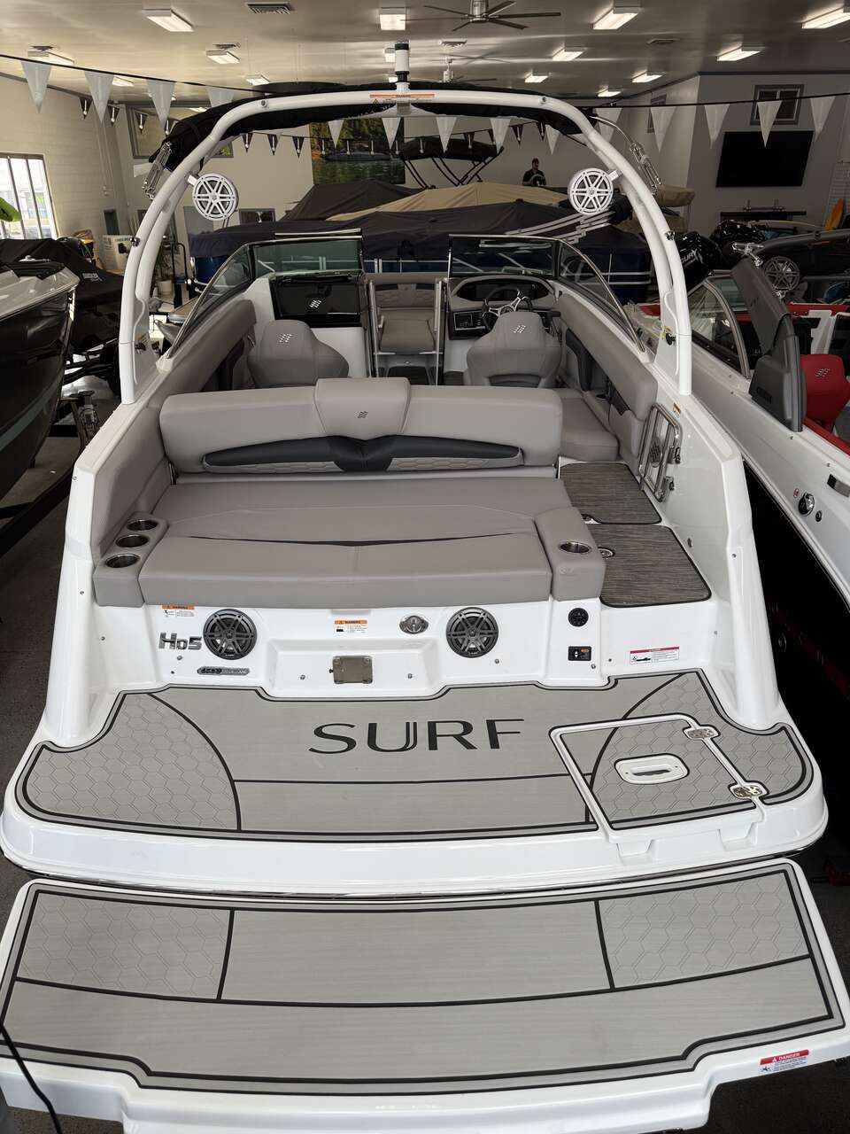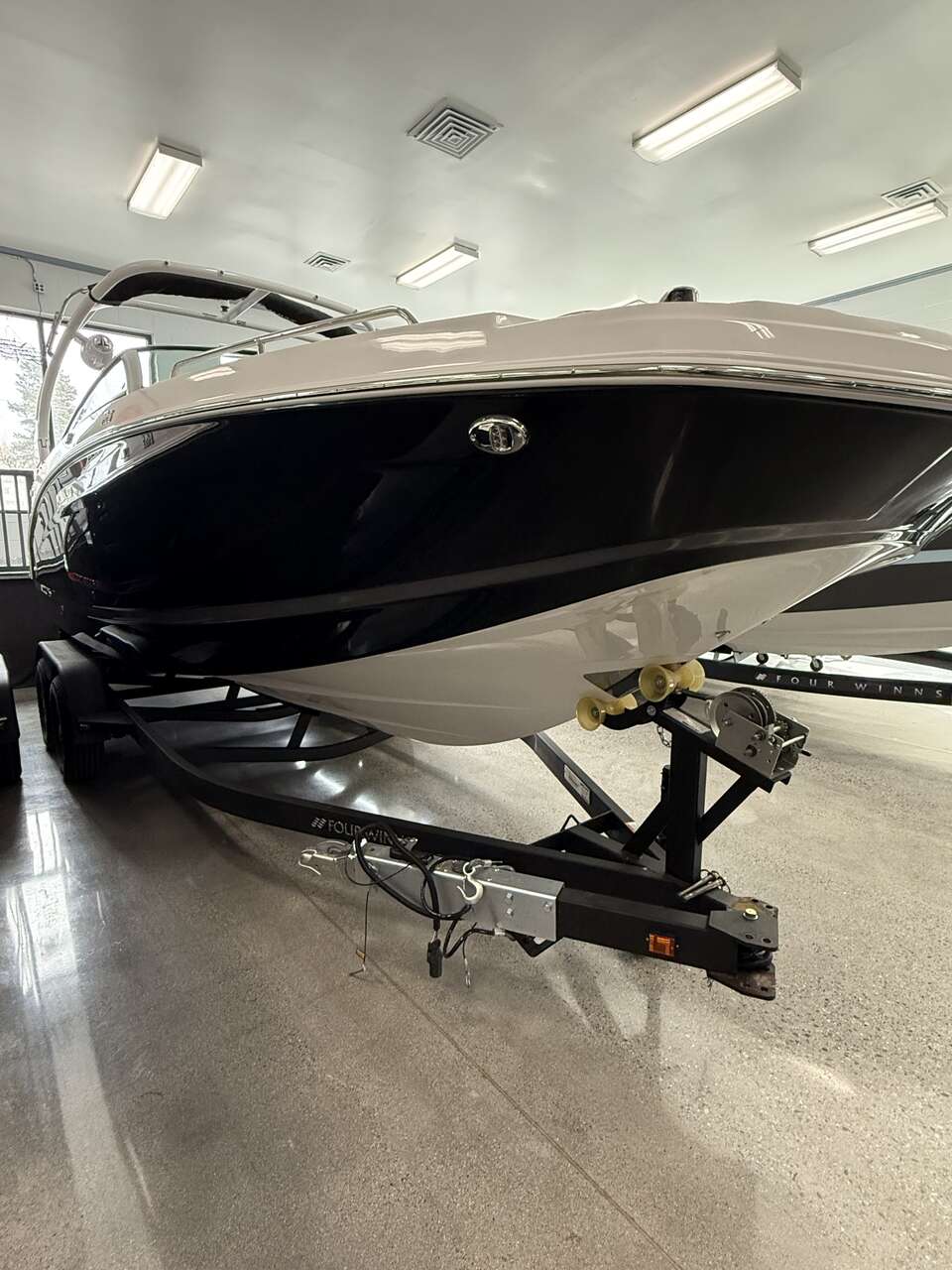 Luxury, class, and style all speak of the HD5. Whether you enjoy a smooth ride or anchoring off the sandbar, she'll be ready. Quality amenities such as the self-bailing cockpit, stern lounge, and head compartment give this boat plenty of flexibility; all she needs is a family and a captain. Year 2025 Make Four Winns Model HD 25 Length 24'4 Storage Length on trialer 26'8 Beam 8'5 Person capacity 13 Fuel capacity 55 gallons 12 gallons fresh water tank onboard Weight 4,860 lbs 3,000 LBS ballast Surf plates Forward facing Volvo Penta Dual Prop Volvo Penta 6.2 L Height on Trailer with tower down 8'1 Surf board tower Racks JBL Premium Audio RGB lighting Tandem Axle trailer 2 5/16 Ball This boat Rides better than any surf boat out there with its V shaped hull but still produces a killer surf/wake board wake!