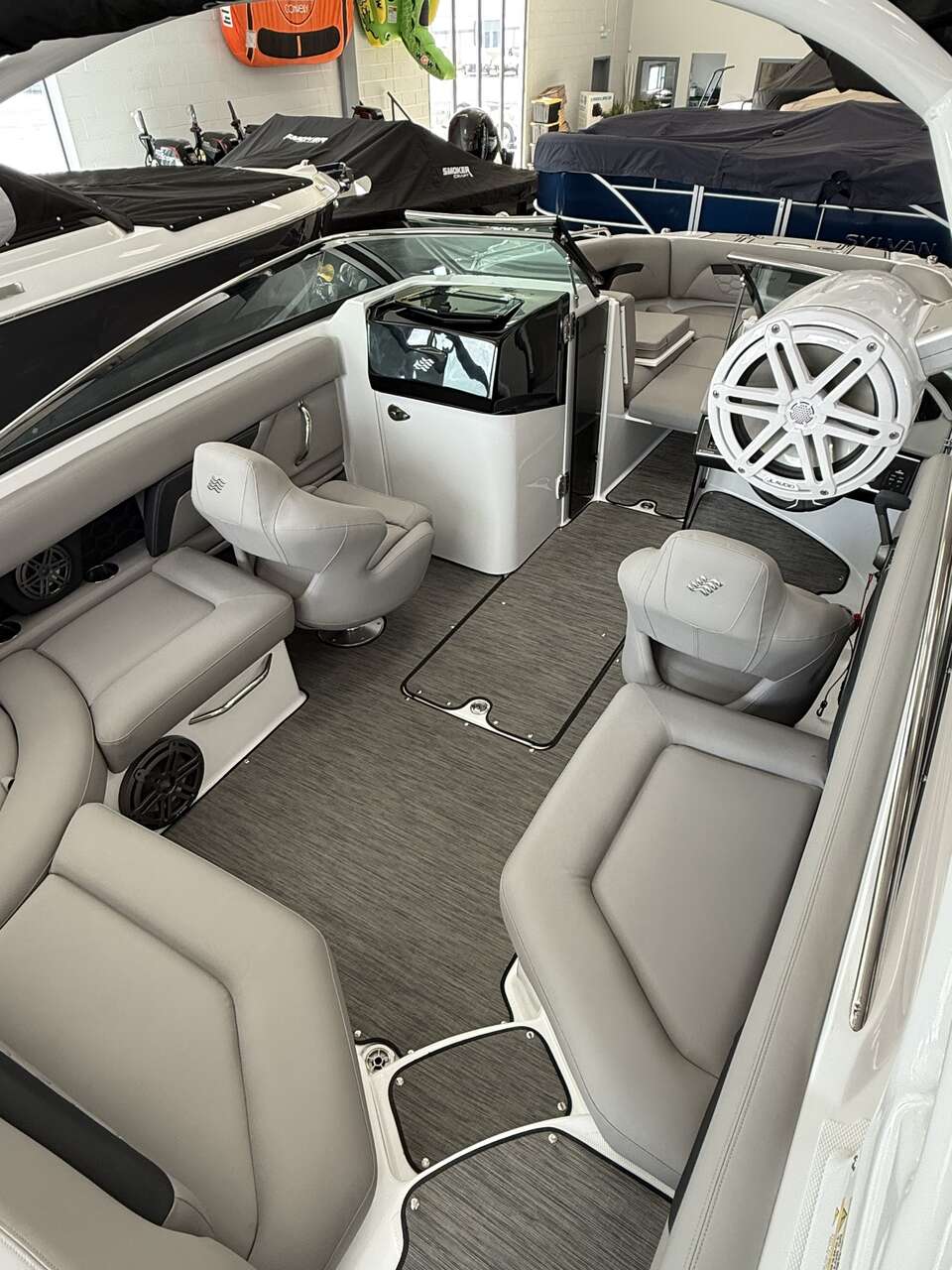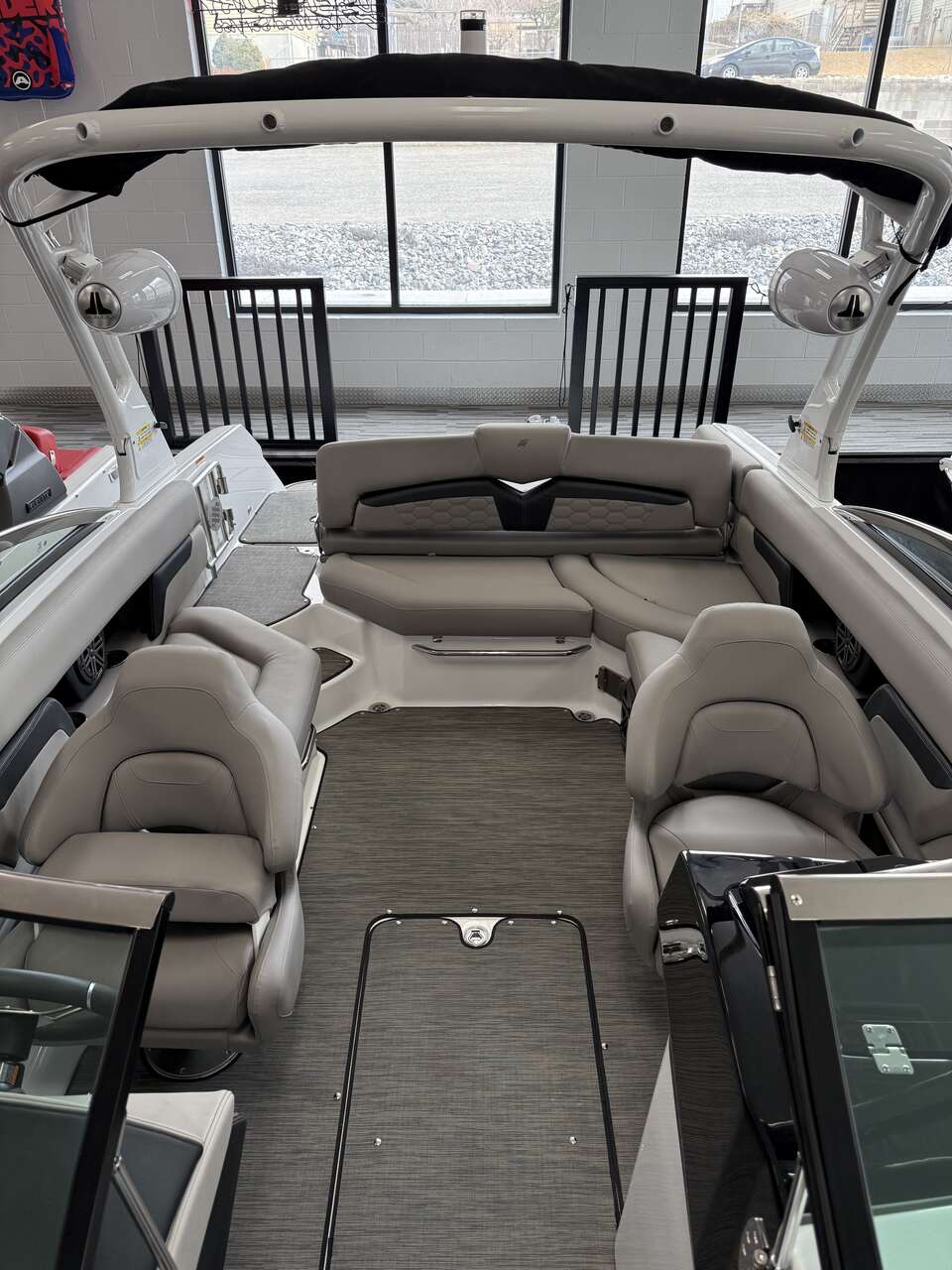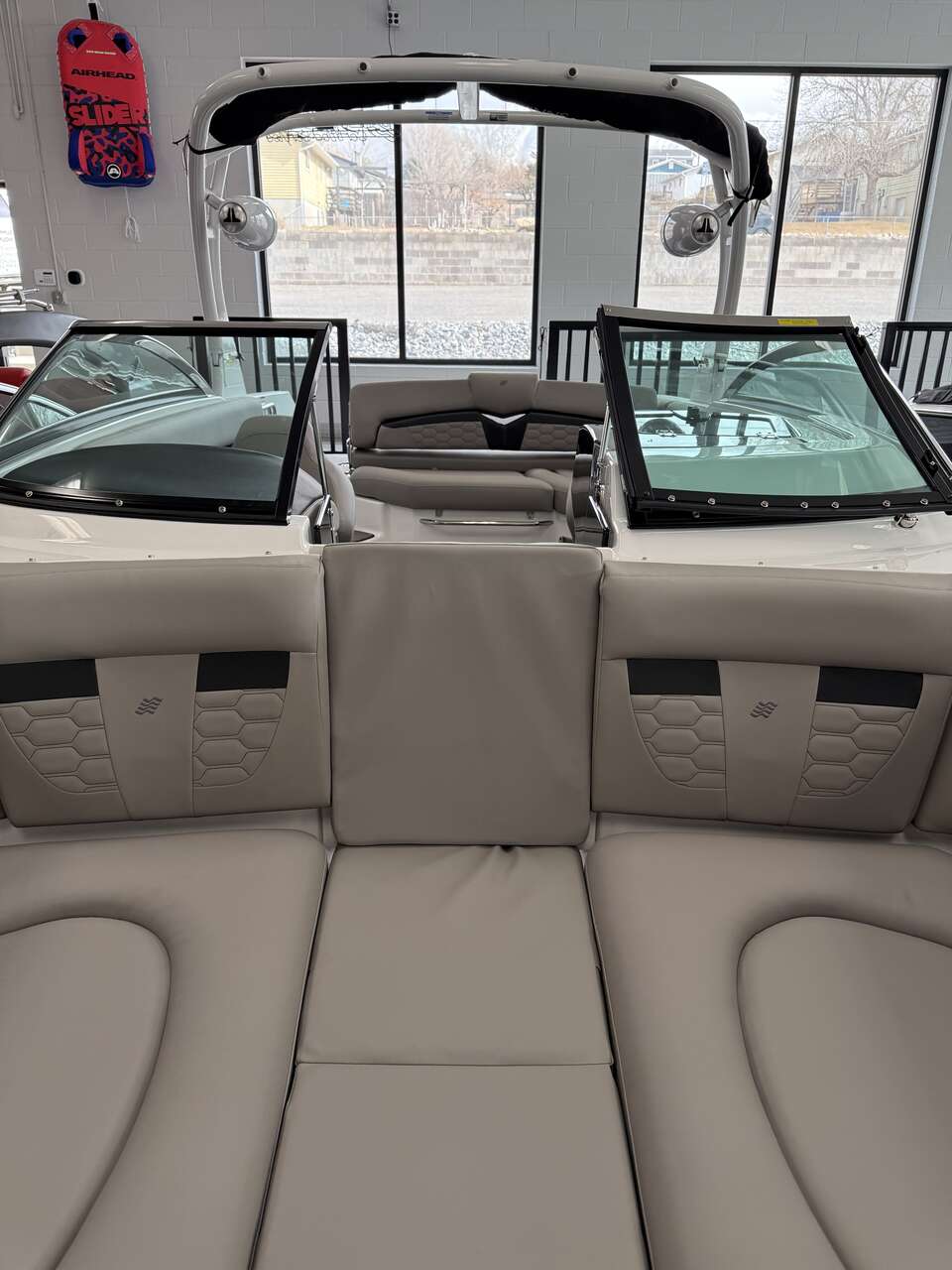 Luxury, class, and style all speak of the HD5. Whether you enjoy a smooth ride or anchoring off the sandbar, she'll be ready. Quality amenities such as the self-bailing cockpit, stern lounge, and head compartment give this boat plenty of flexibility; all she needs is a family and a captain. Year 2025 Make Four Winns Model HD 25 Length 24'4 Storage Length on trialer 26'8 Beam 8'5 Person capacity 13 Fuel capacity 55 gallons 12 gallons fresh water tank onboard Weight 4,860 lbs 3,000 LBS ballast Surf plates Forward facing Volvo Penta Dual Prop Volvo Penta 6.2 L Height on Trailer with tower down 8'1 Surf board tower Racks JBL Premium Audio RGB lighting Tandem Axle trailer 2 5/16 Ball This boat Rides better than any surf boat out there with its V shaped hull but still produces a killer surf/wake board wake!