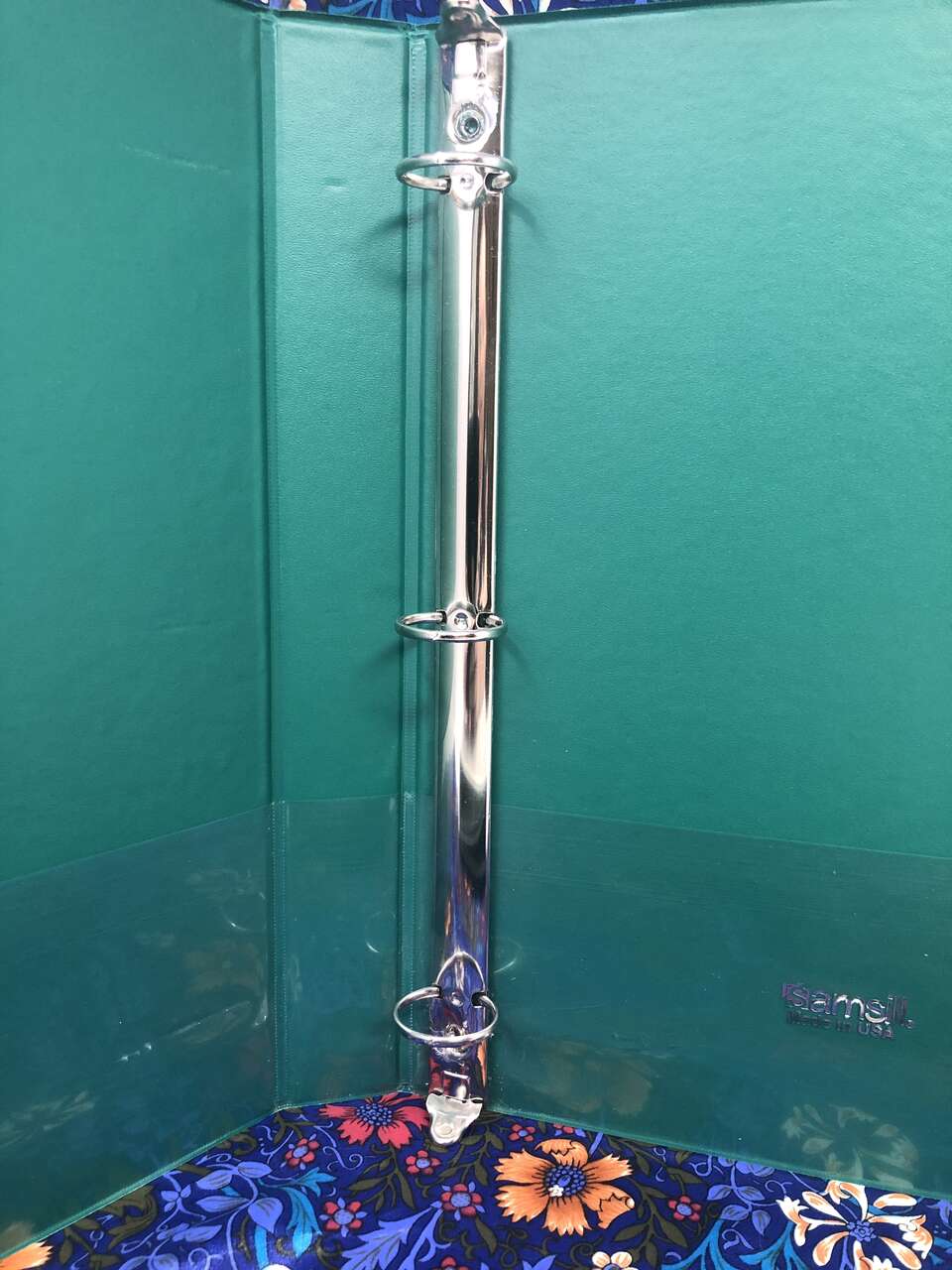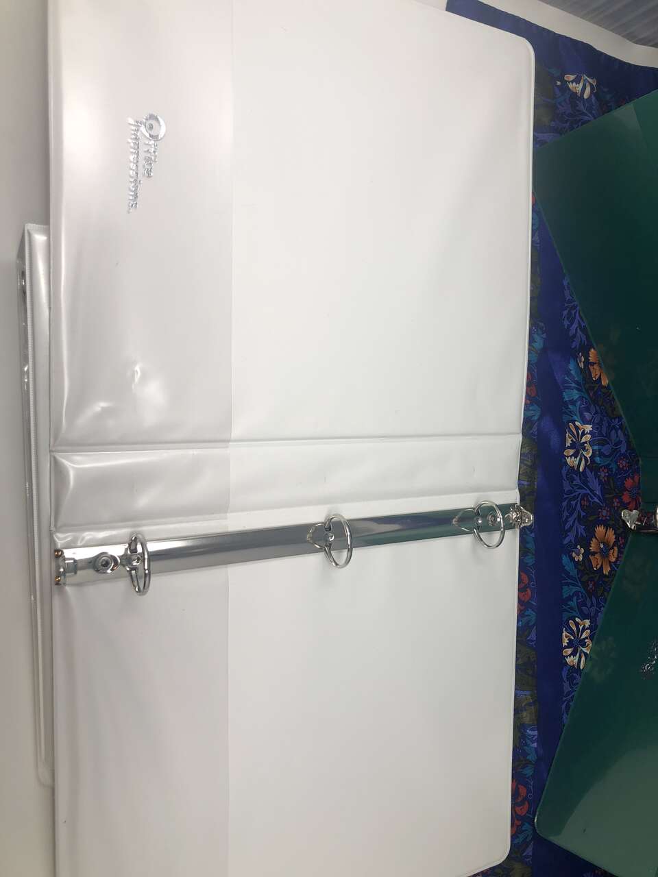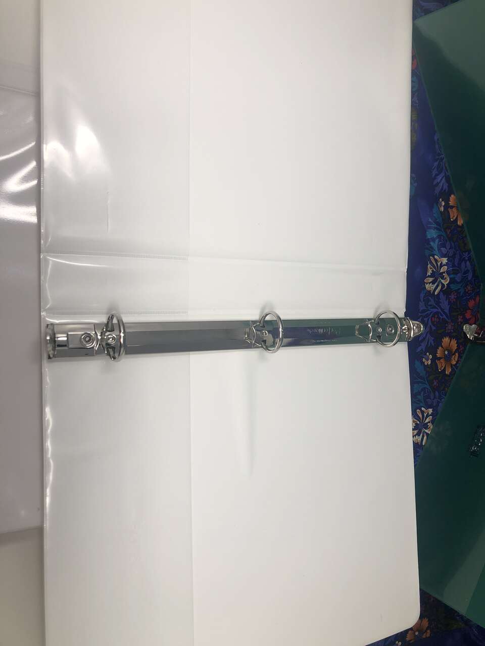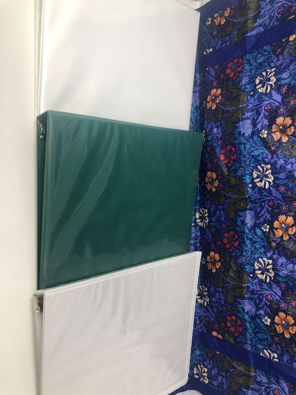 The binder rivets of the green binder were a little rough around the edges, so we put hot glue over it to create a flat surface area and keep the binder sturdy (we've marked it down a little in price for that reason)