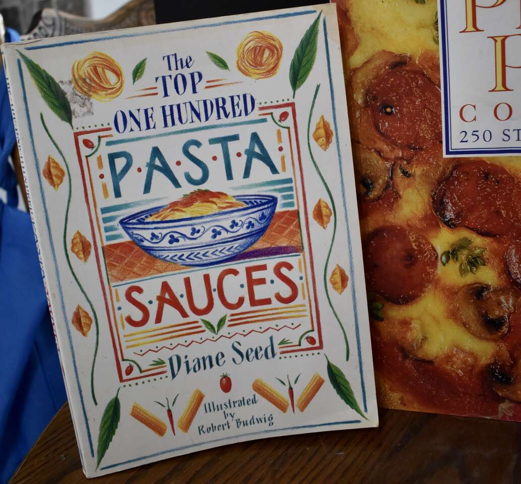 1- THE TOP ONE HUNDRED PASTA SAUCES - PUB.1995- WITH 123 PAGES WITH LOTS OF RECIPES AND SOME ART.