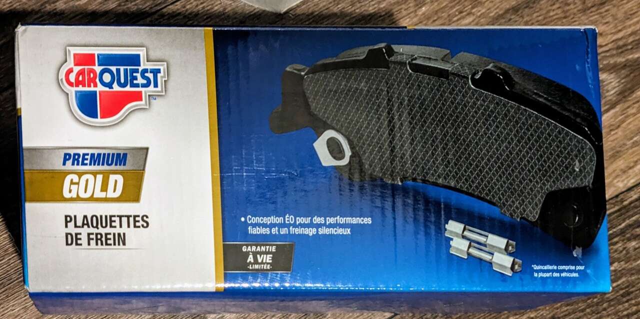 Brand new box of front brake pads. Bought from Advance Auto Parts on sale hoping they would fit my car, but unfortunately they're for a different trim level with different brakes so they won't work for me.