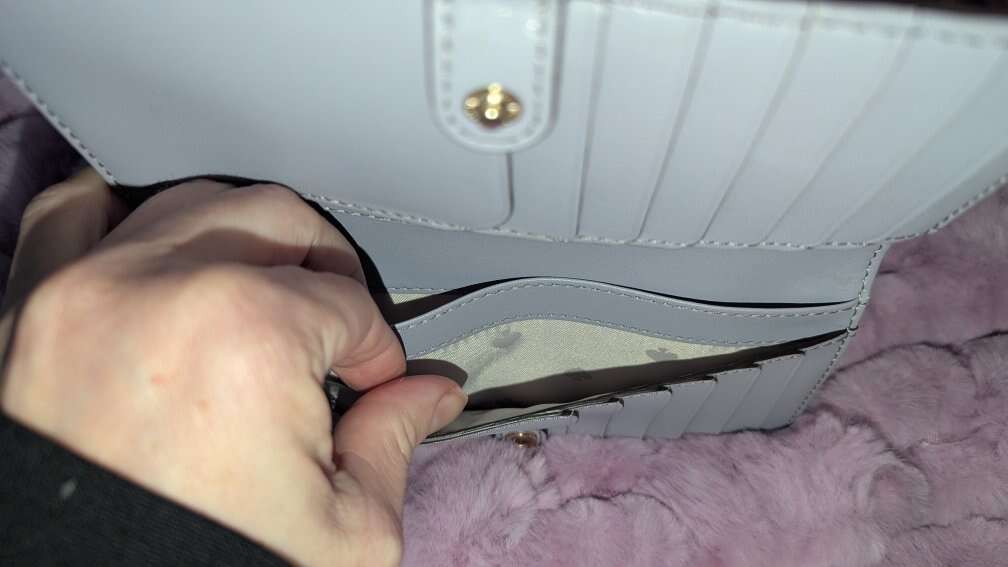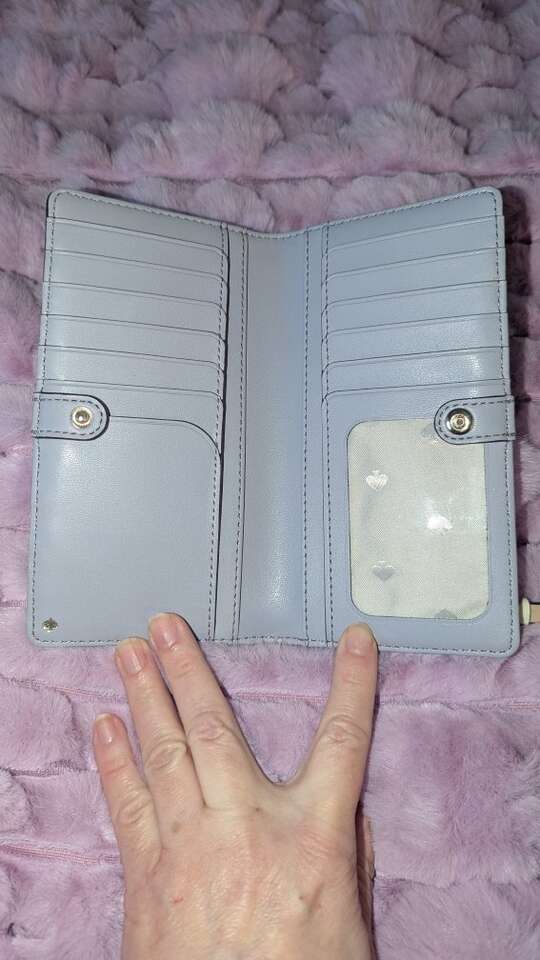 Great condition, only one spot on the back where there is a purple dot. Otherwise the wallet is perfect.