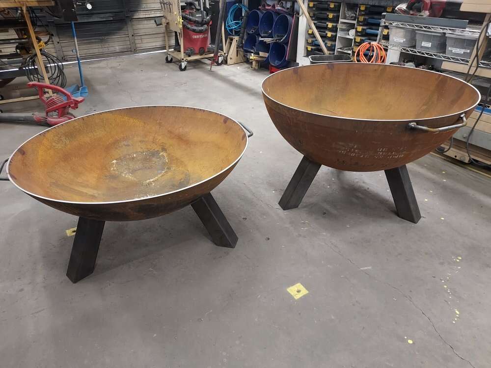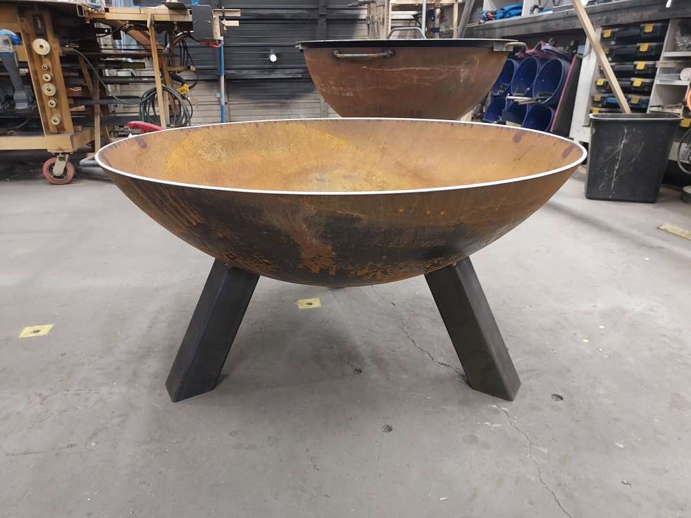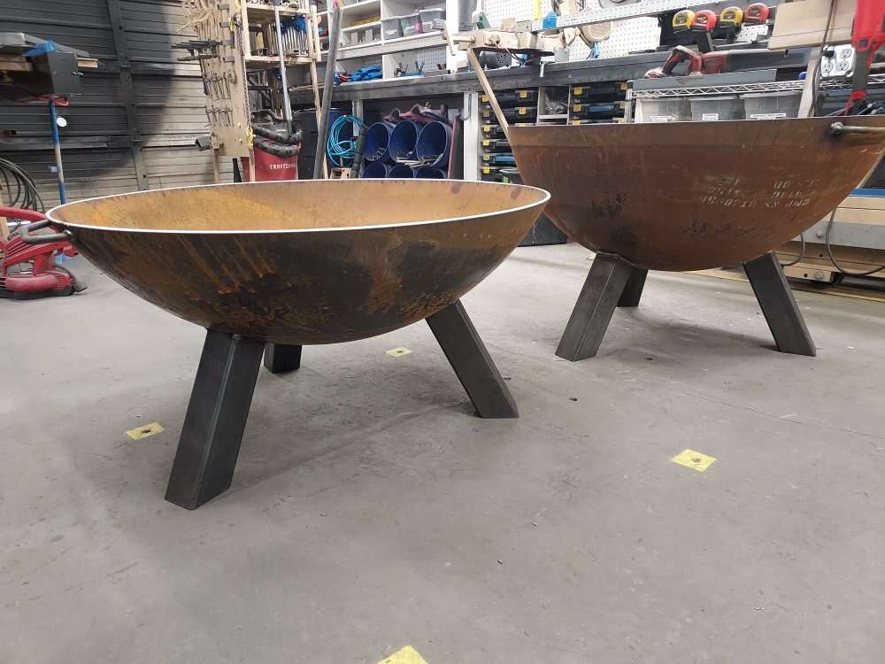 These 3 legged firebowls are made from very heavy duty steel. Will absolutely last a lifetime Have 30-36and 40 inch diameters.
