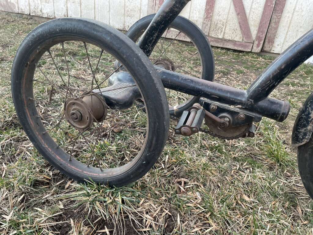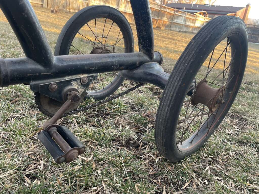 ApplePayThis is a Vintage 1930’s Taylor Tricycle that is chain petal driven. It is definitely a collectors item as there are some parts that are not working correctly. (Mainly the spokes) Could be fixed or restored!