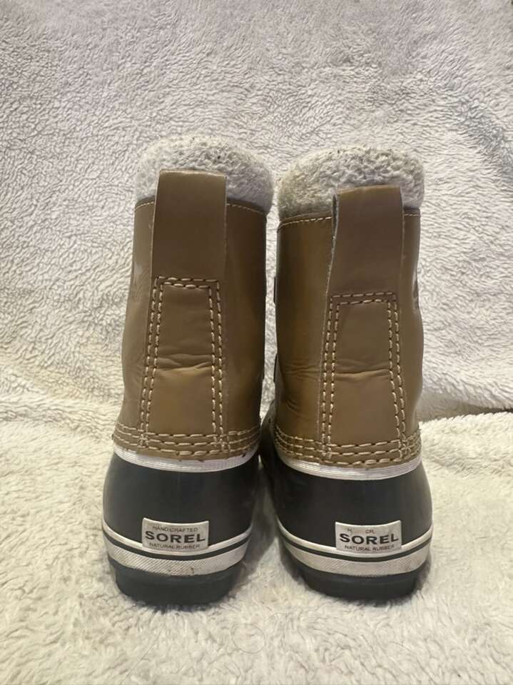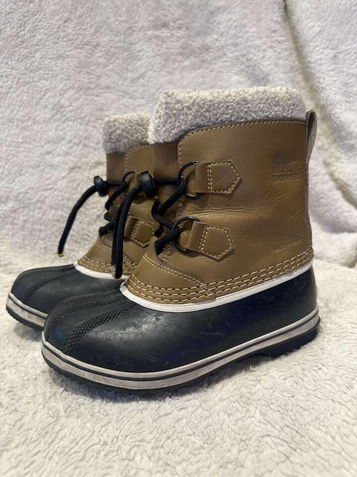 Sorel toddler size 13 black rubber footbed with brown leather uppers waterproof winter boots. These are in lightly used condition, see photos for details. I take cash or Venmo, but cash is preferred. Text is best. 801-201-4446. Check out my other ads for additional sizes and styles.