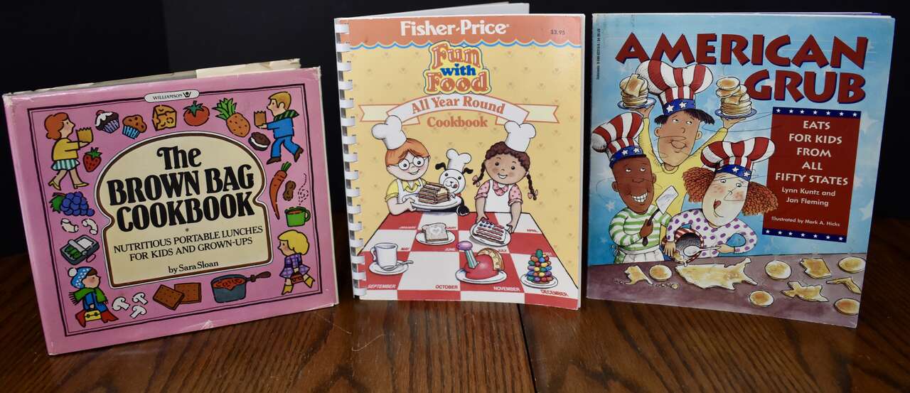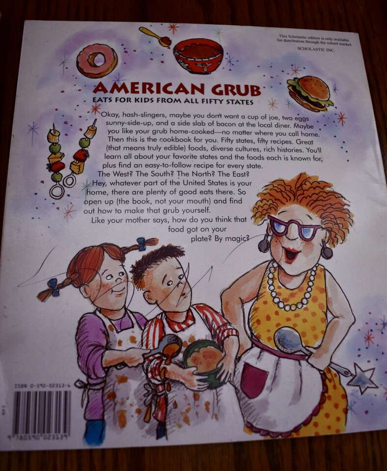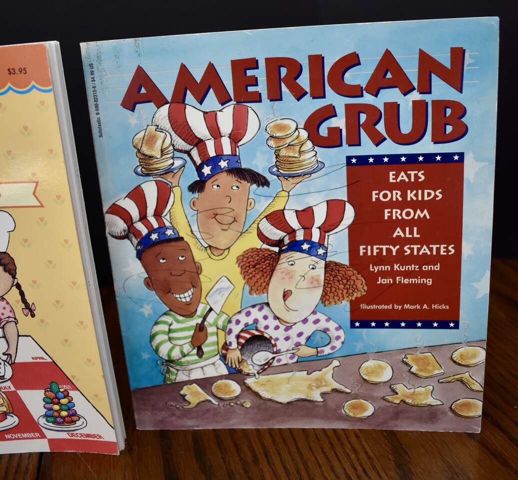 2- AMERICAN GRUB - EATS FOR KIDS FROM ALL FIFTY STATES BY LYNN KUNTZ AND JAN FLEMING WITH FUN ILLUSTRATIONS. PUB. 1998 WITH 80 PAGES. IT IS A NICE LOOKING PAPERBACK BOOK THAT IS IN NICE CONDITION.