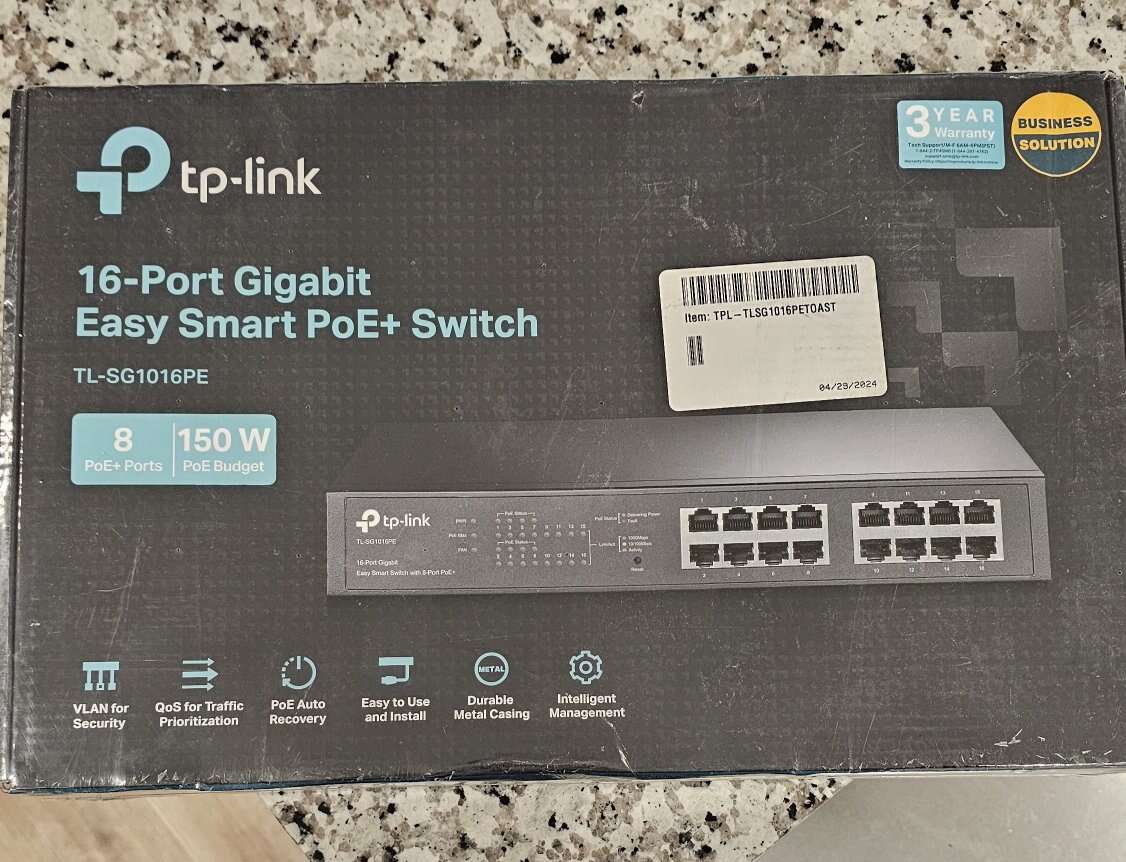 TP-LINK (TL-SG1016PE) 16-Port Gigabit Easy Smart Desktop/Rackmount Switch, 8-Port PoE, Metal NEW.