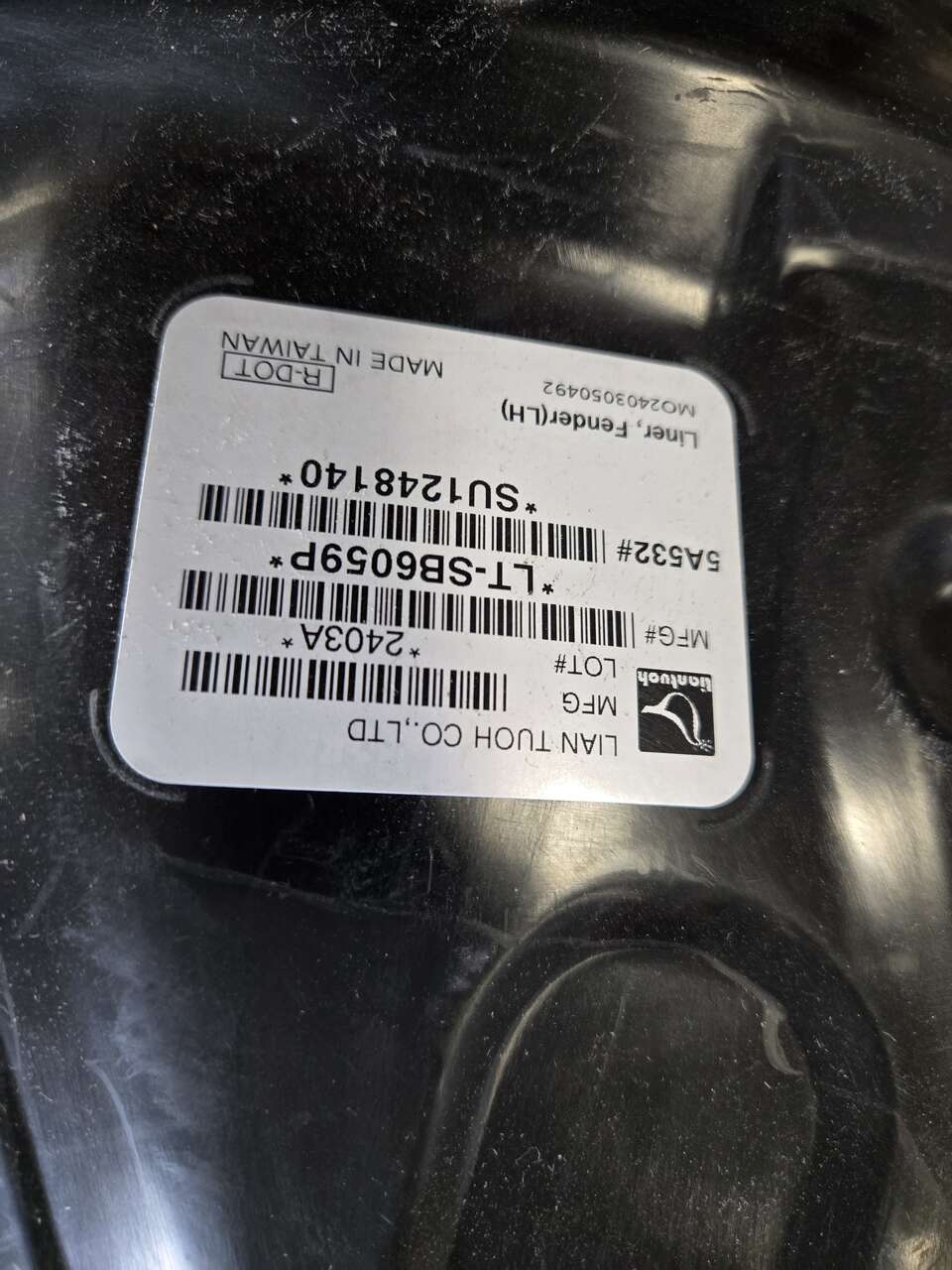 DRIVER SIDE FRONT FENDER LINER; INJECTION MOLDED; MADE OF PE PLASTIC