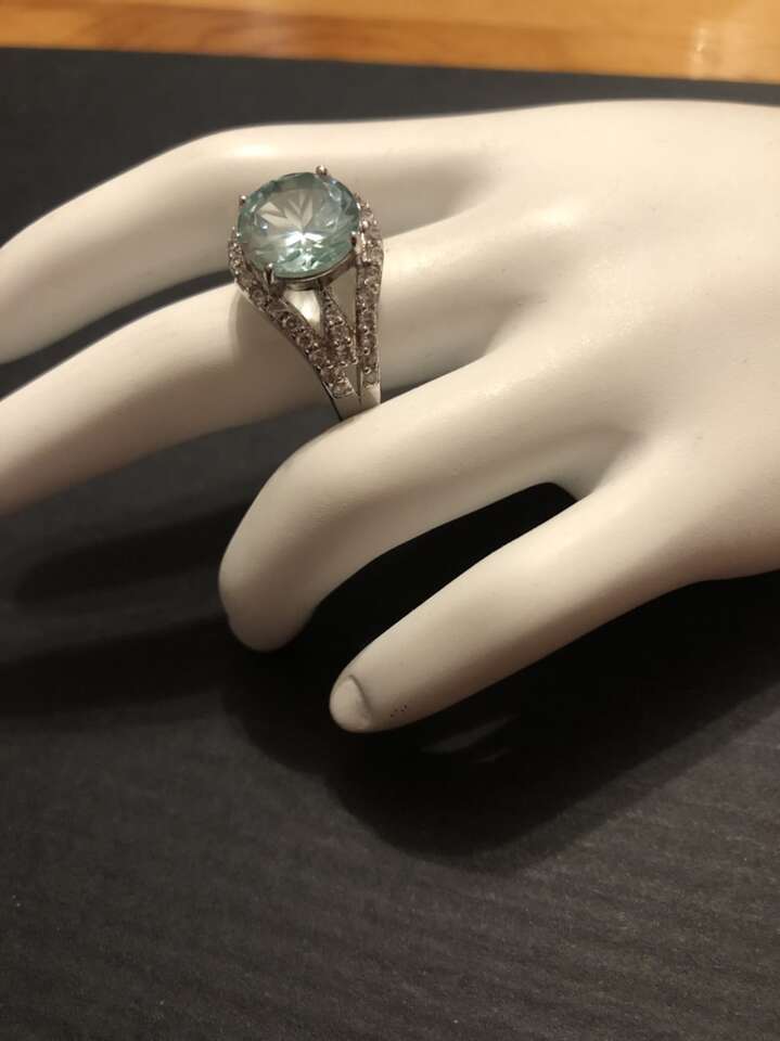 Beautiful sterling silver ring with 8.38 ctw Bella Luce “Paraiba”. Size 7 New in box.