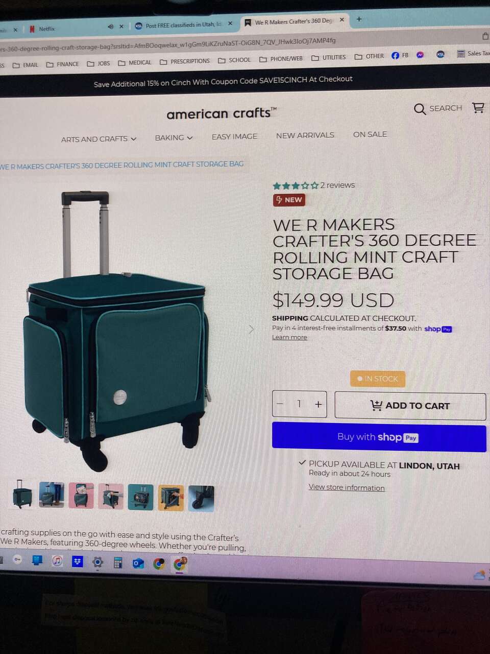Item# 841 Retail $60 $40 OBO We R Memory Keepers 360 Crafters Trolley Bag 70965-7