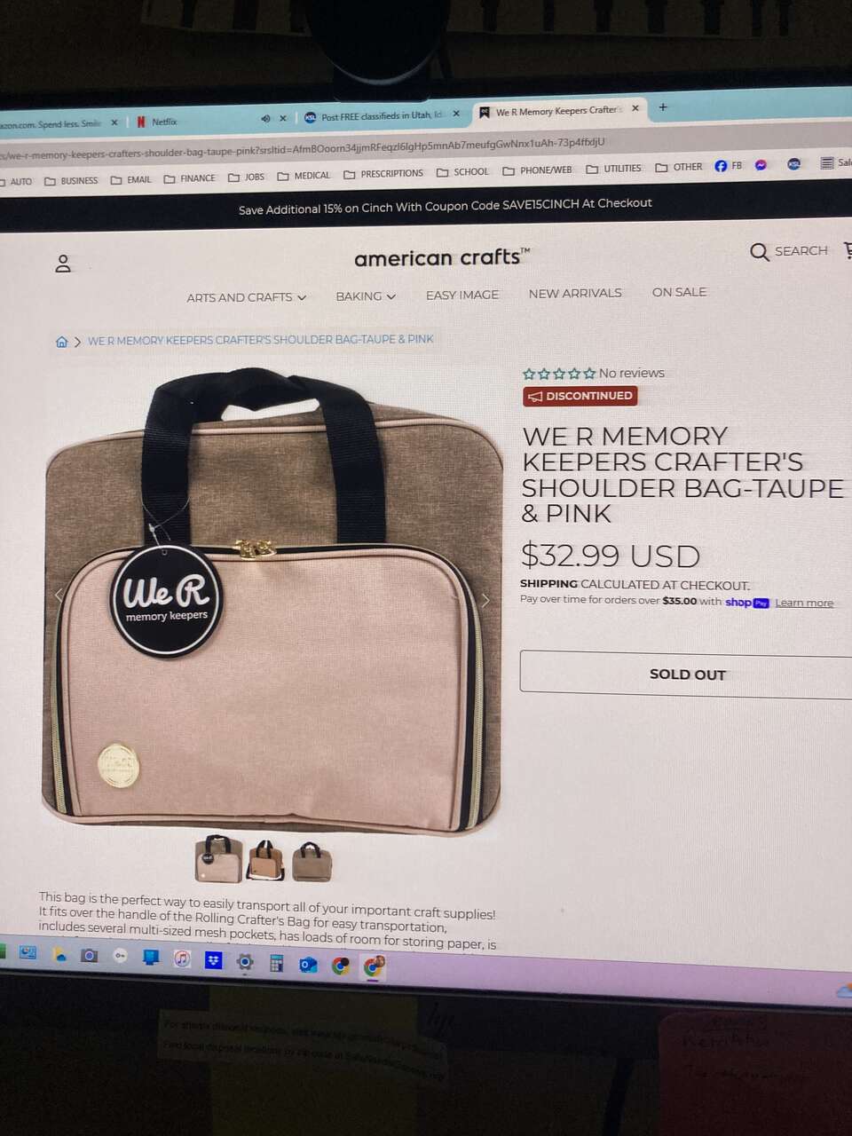 Item# 838 Retail $35 (2) $25 OBO We R Memory keepers Taupe CRAFTER'S Shoulder Bag WR663152