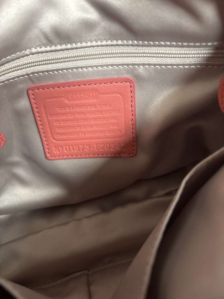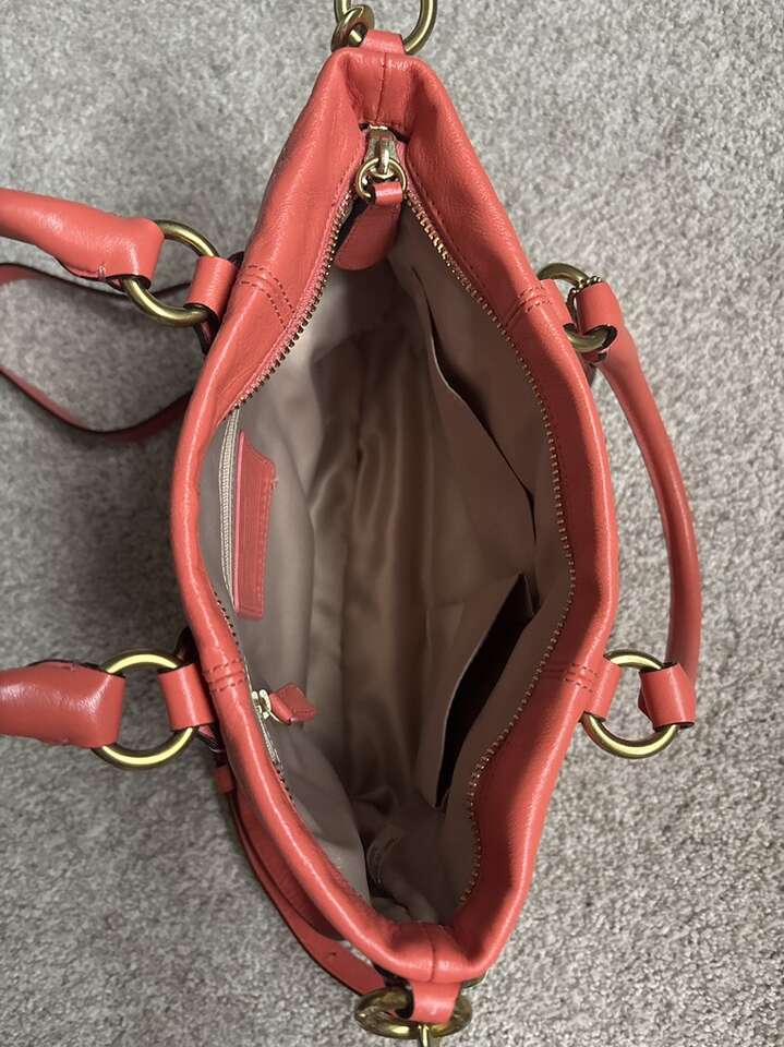 VenmoBeautiful and Perfect like new condition Coach purse. Coral with gold accents, zipper top to close and 3 inside pockets. Comes with a dust case and detachable shoulder strap. Text is best or message.