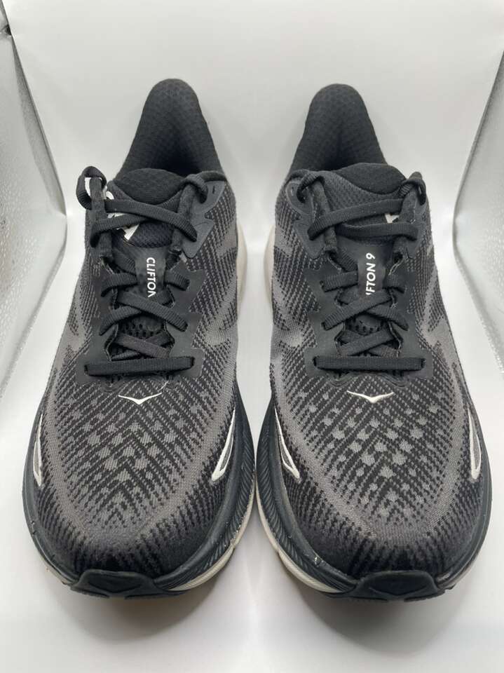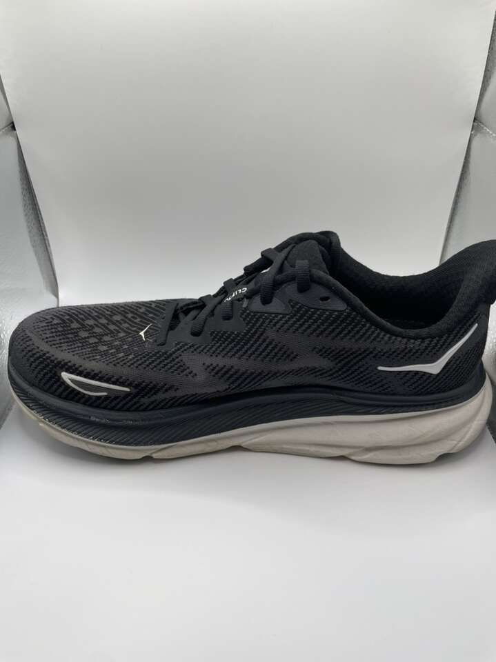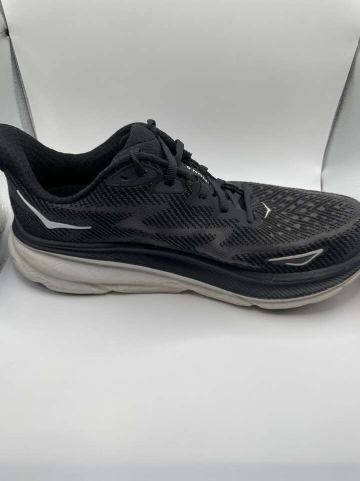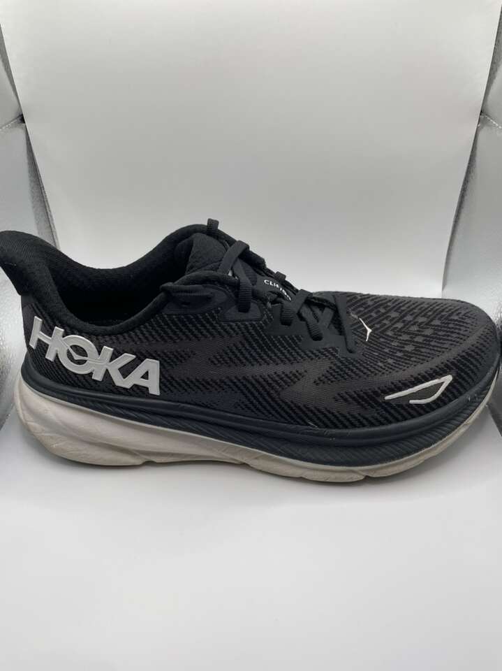 VenmoUsed but in great shape women’s Hoka Clifton 9 Size 8.5 Running Shoes. Black and white color way. Please message with questions. Thank you