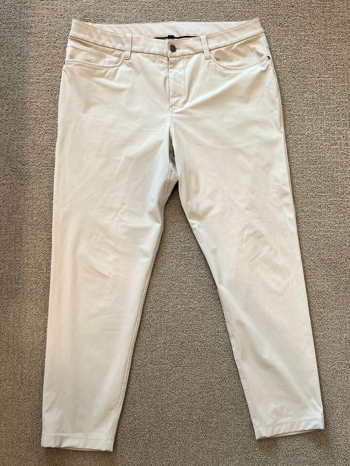 VenmoPriced per Pair. Excellent condition and show no signs of wear. 2 pairs of ABC Slim-Fit 5 Pocket Pants in Navy, and Trench (khaki). Both are 36” waist and 32” length in the Warpstreme fabric and were purchased locally at Lululemon in City Creek. $128 new. Located in Sandy near 10800 S 2300 E. Cash or Venmo only. Prefer texts.