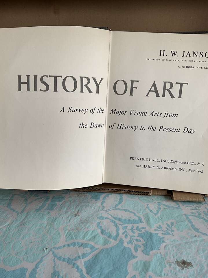 Hardbound book titled “History of Art” by H. W. Janson. This is the seventh printing in 1965 from the original printing in 1962. Contexts: The Ancient World, The Middle Ages, The Renaissance and The Modern World.