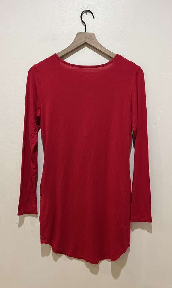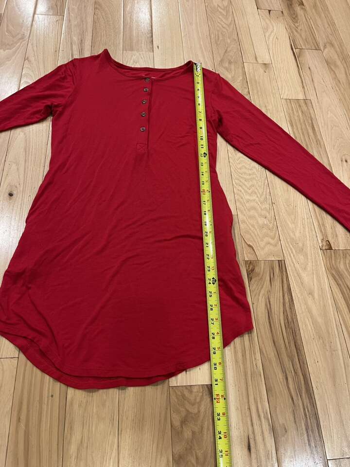 Albion Fit Pajama Dress in Cranberry Red - Women’s Size XS - long sleeved - the website description reads: “Our best-selling bamboo nightgown now comes in this cheery Holiday red! The button front detail and side pockets make this a Holiday PJ dress you'll wear year after year. Made in our eco-friendly bamboo fabric and flattering shape, the Red Bamboo PJ Dress is a festive must-have for every woman.” Pre-owned, excellent condition. Sold out online.