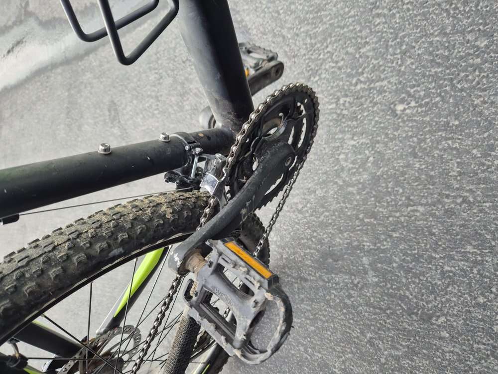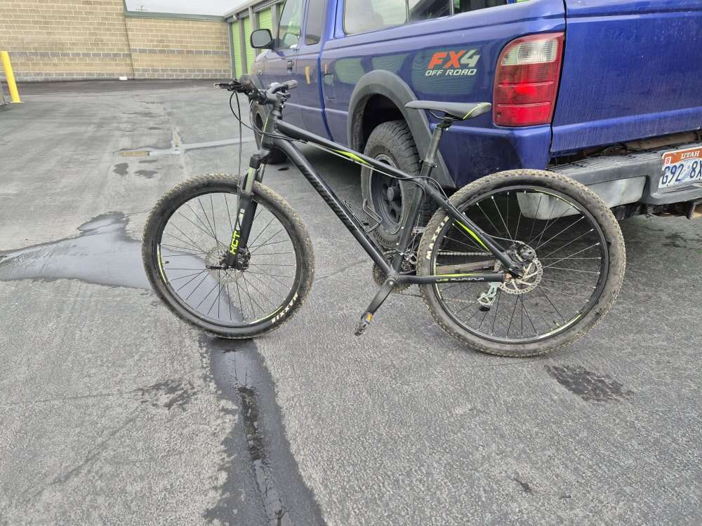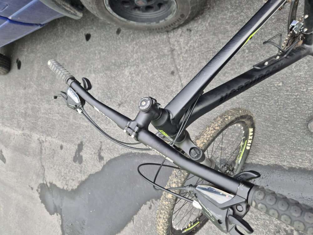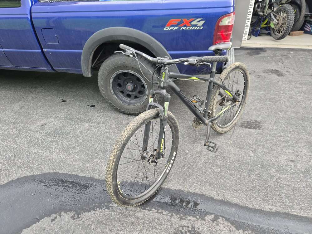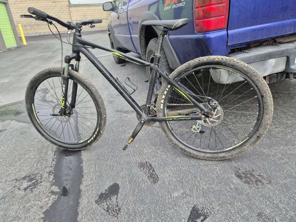 The handle bars were upgraded with wider bars for more control (still have original if interested) and pedals. Brand is northrock. Tires are 27.5 with brand new tubes. Maxxis tires, disk brakes. This was a great started bike but I got more into mountain biking and got a new one. Few scratches but overall in great condition.