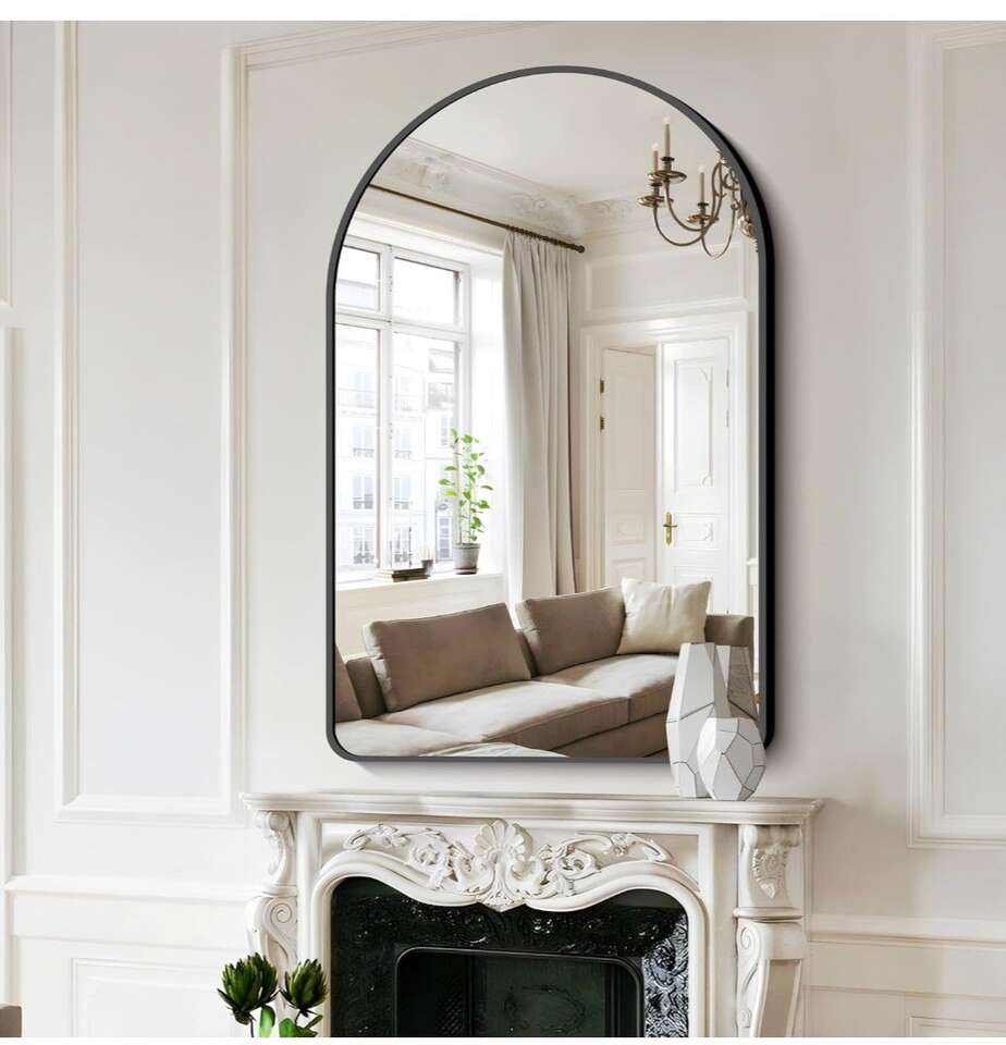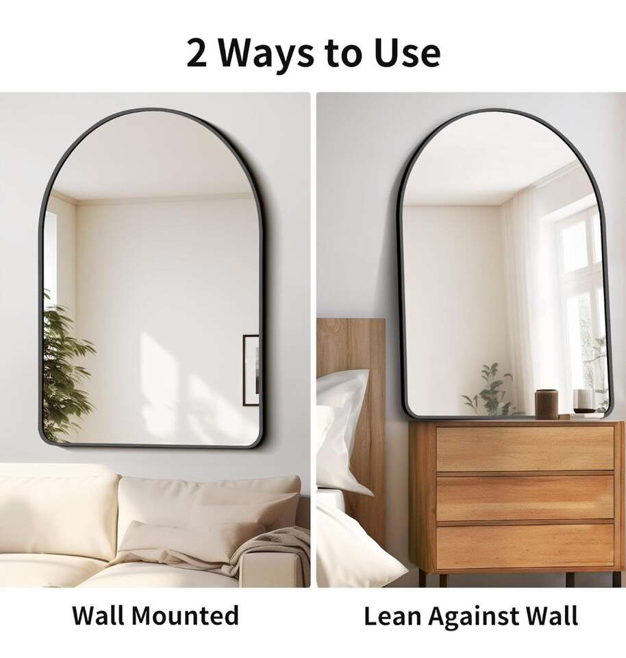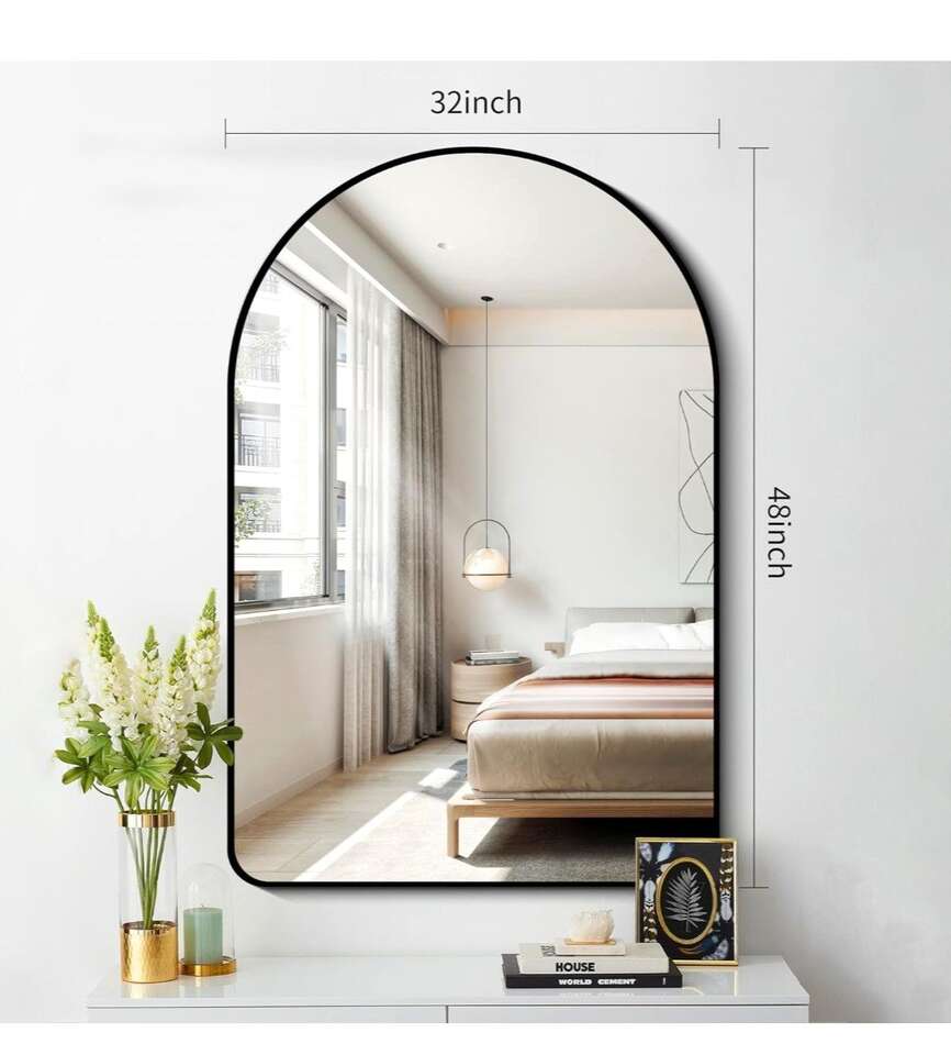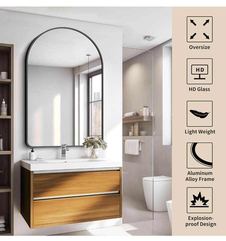 Arched Mirror 32x48 Inch, Bathroom Mirror Wall Mounted Modern Black Aluminum Alloy Frame Decor Large Dresser Mirror for Bedroom Living Room Entryway, Hanging or Leaning Against Wall