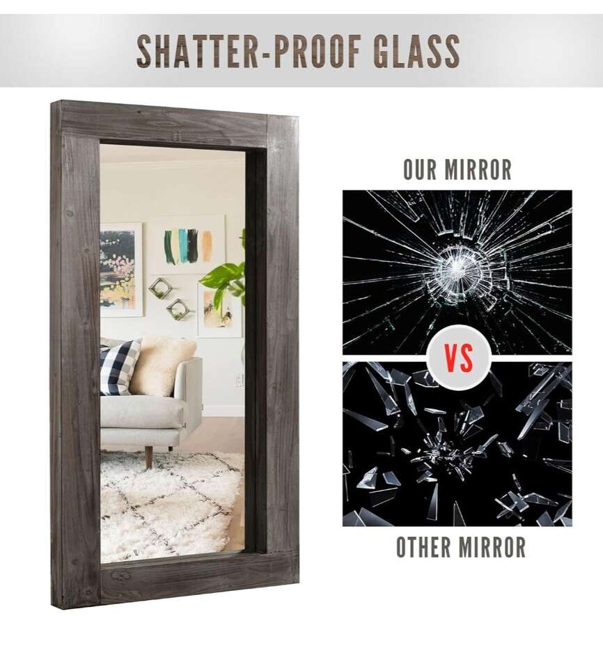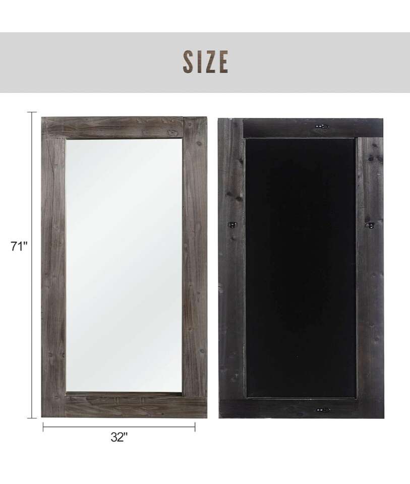 KIAYACI Over Sized Floor Mirror Wood Frame Wall Mounted Mirror Distressed Style Wide Frame Dressing Make Up Mirror for Bathroom/Bedroom/Living Room/Dining Room/Entry/Farmhouse (Dark Gray 71" x 32") 70.8" x 31.5" Charcoal 30% Wood 70% Glass FULL BODY MIRROR: Size: 71" x 32" you can see your entire figure easily. WOODEN WIDE FRAME: The large floor dressing mirror is distressed style wood frame it is solid natural and evieremental freely. EXPLOSION-PROOF GLASS: The floor mirror is coated with explosion-proof membrane shattered glass will not be spilled out if impacted by external force safe and protective. INSTALLATION: It can lean agaist the wall or hang on the wall. There are hanging holes in the back of the mirror just nail two complimentary screws on the wall and hang the mirror