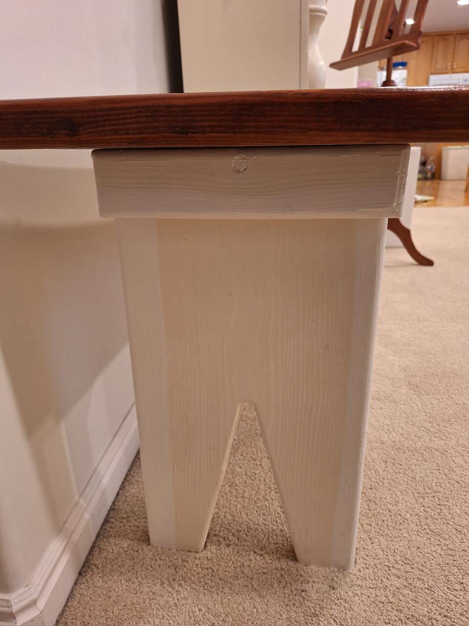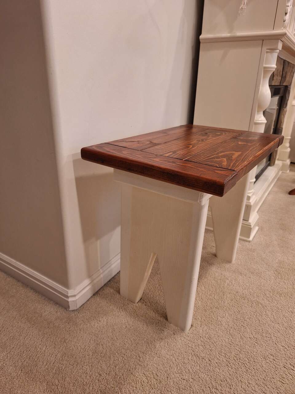VenmoFor sale is a Farm House style bench in white with dark oak colored top. Very sturdy. Smoke free pet free home. 26.25"W x 16" D x 22" H