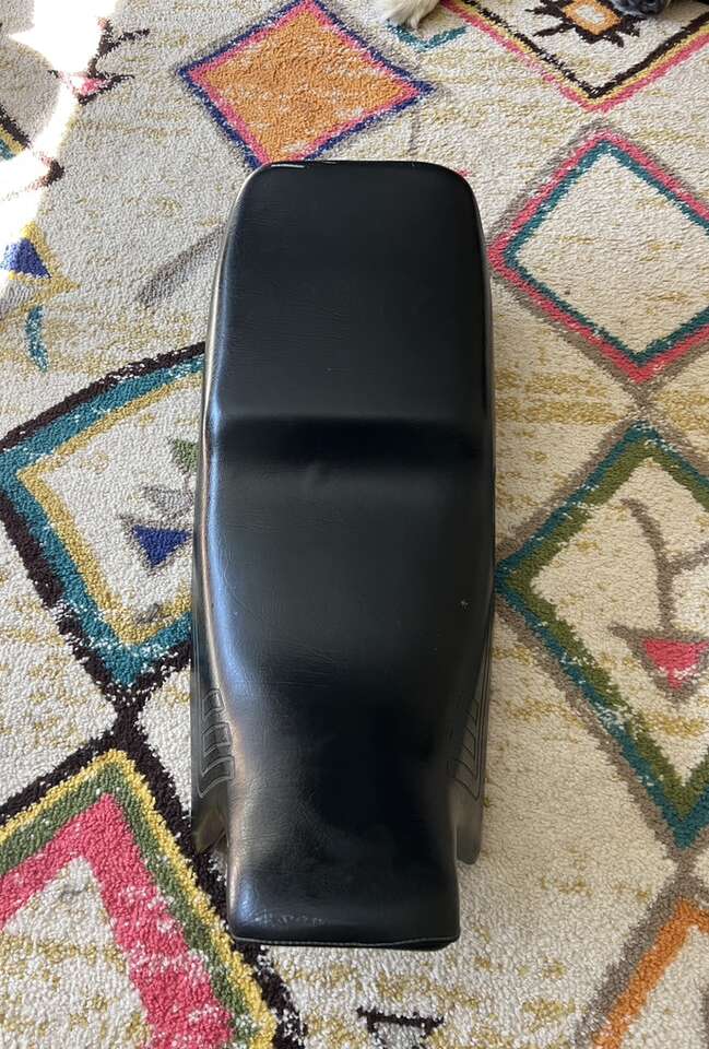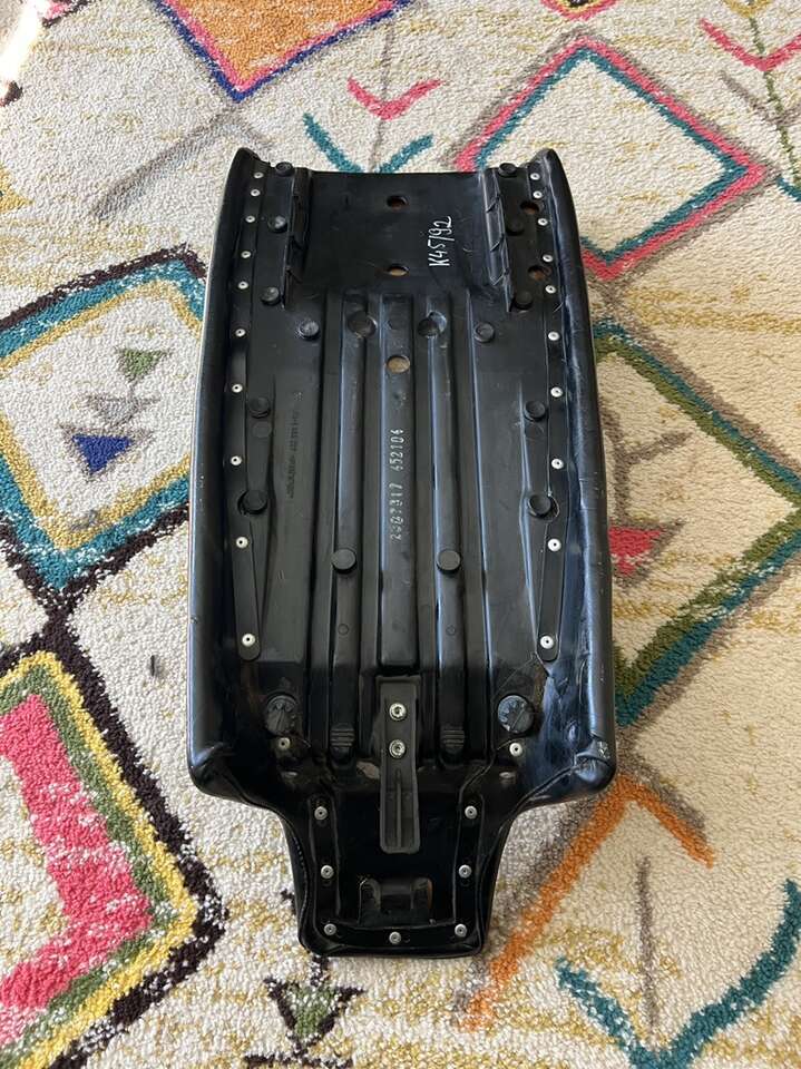 For sale is an original seat from a BMW R100GS (1988-1995). This seat is in good condition, with no tears or major scratches. The upholstery is intact and shows minimal signs of wear, offering great comfort for both the rider and passenger.\