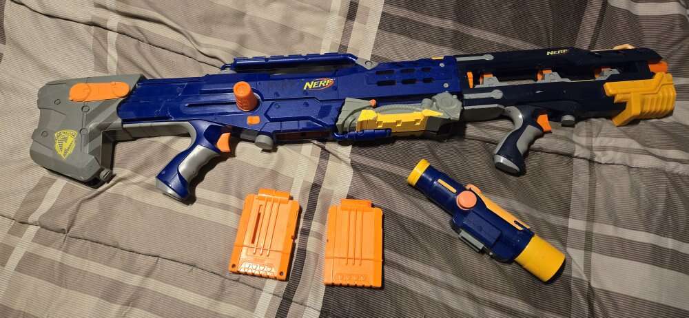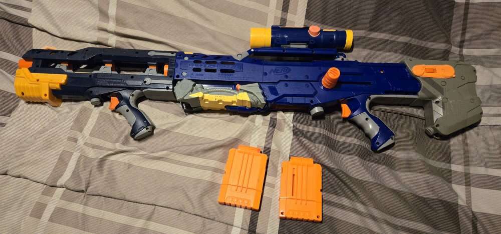 PayPalnerf Longshot CS-6 blue with scope and magazines see pictures text is best calls ok no emails HAVE A GREAT DAY