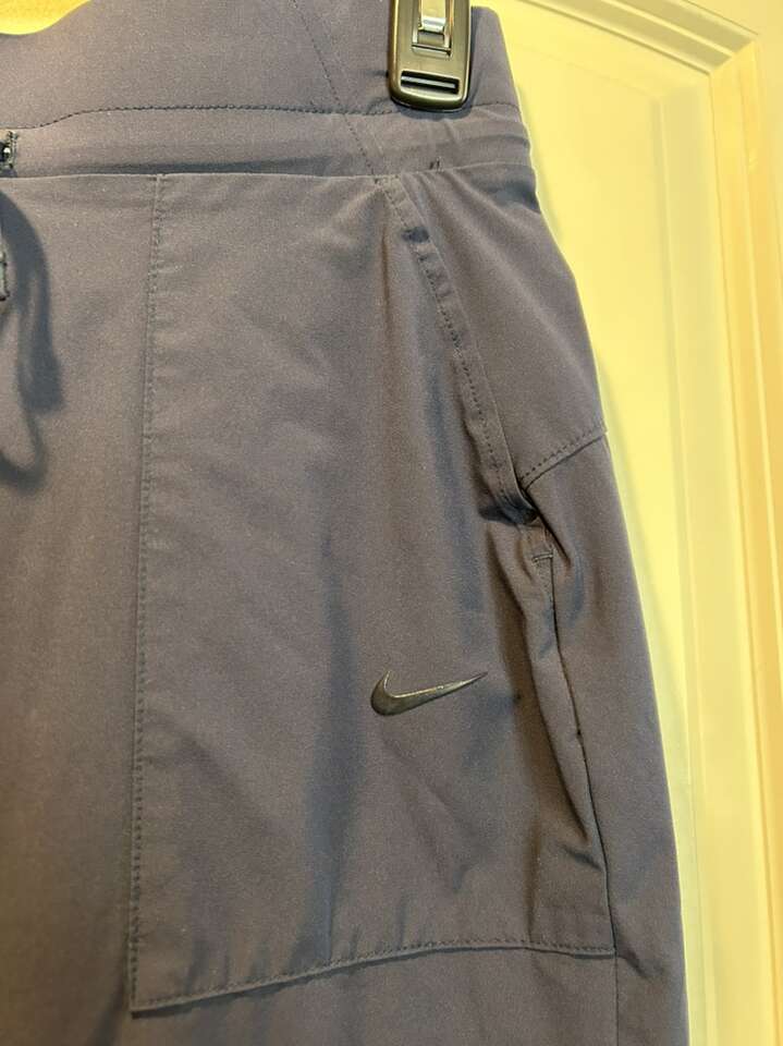 VenmoLike new Nike Dri Fit size small pants in navy blue. These are so flattering and dressy. Two front pockets on an angle. Rear has curved stitch to make your booty look so good. These have a scrub pant feel to them but can be worn anywhere. No flaws or defects. Clean. Smoke free home. Cash or Venmo. Porch pickup from Alpine.
