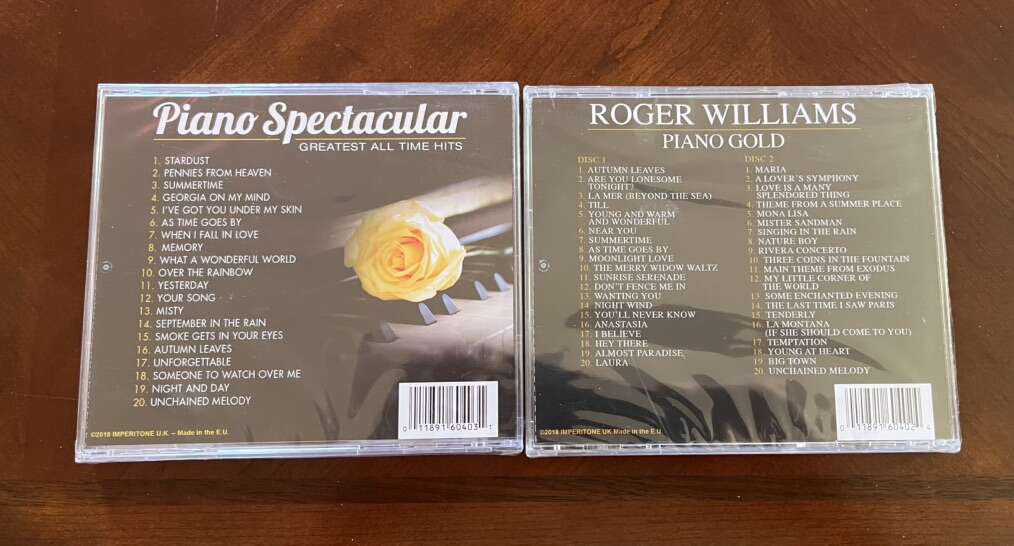 VenmoNever used still in plastic Piano spectacular Greatest all time hits (20 songs) and Piano gold by Roger Williams (40 songs). Made in EU, 2018. $10 must take both.