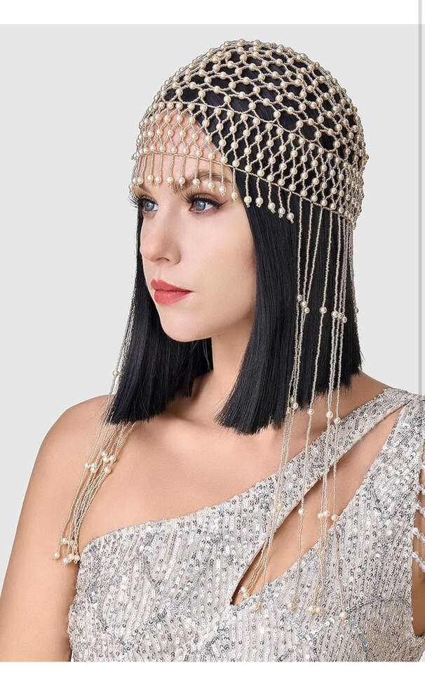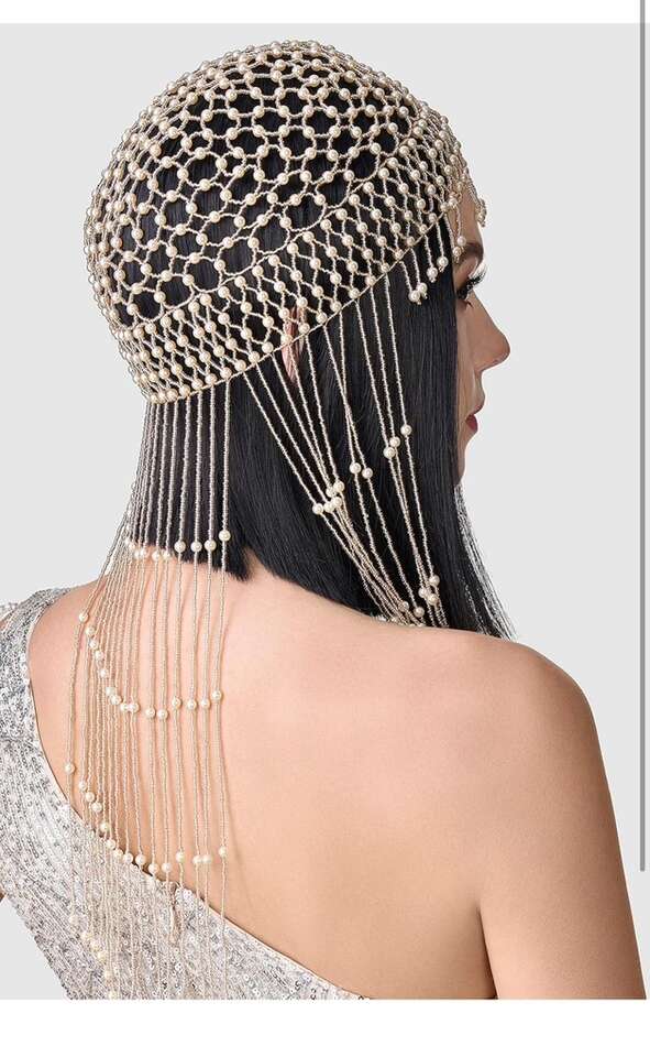 New in original packaging- BABEYOND 1920s Pearl Flapper Cap Headpiece Roaring 20s Gatsby Pearl Head Chain (Rose Gold)