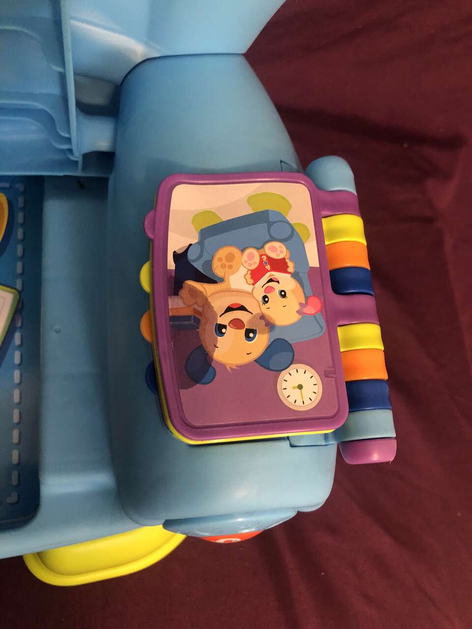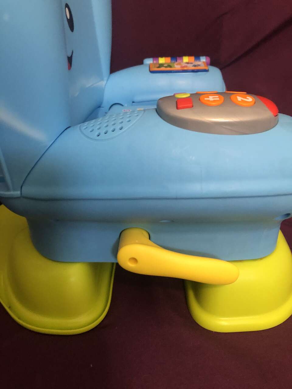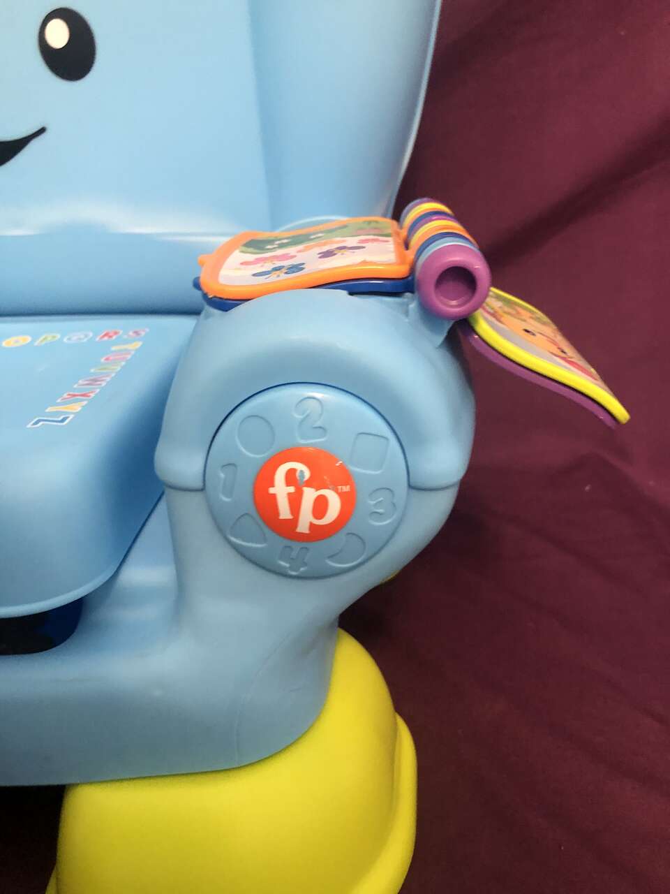 VenmoThis chair is fantastic for kids aged 12+ months. It has 3 learning levels and multiple activities for them to do. They can channel surf with their "remote". They can read with the flip book with pictures. The seat lifts for "storage", and it has the idea of a reclining chair with a moveable handle on the side (the chair doesn't recline). Batteries are included.