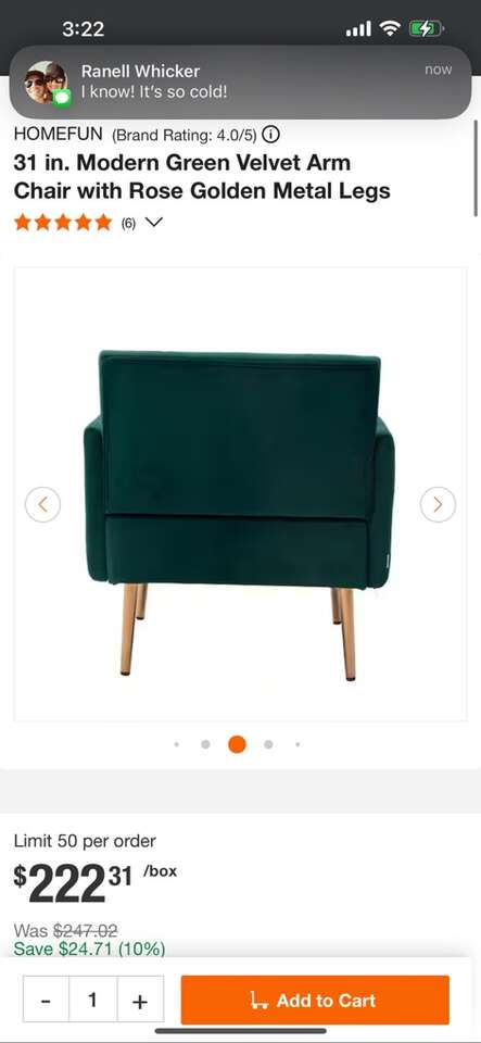 Venmo31 in. Modern Green Velvet Arm Chair with Rose Golden Metal Legs