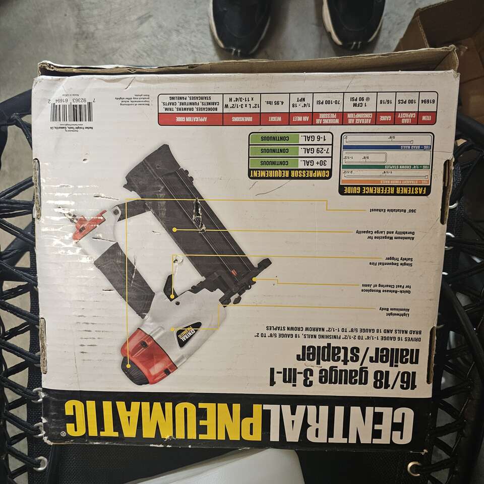 Central Pneumatic 16 18 Guage 3 in 1 Nailer Stapler