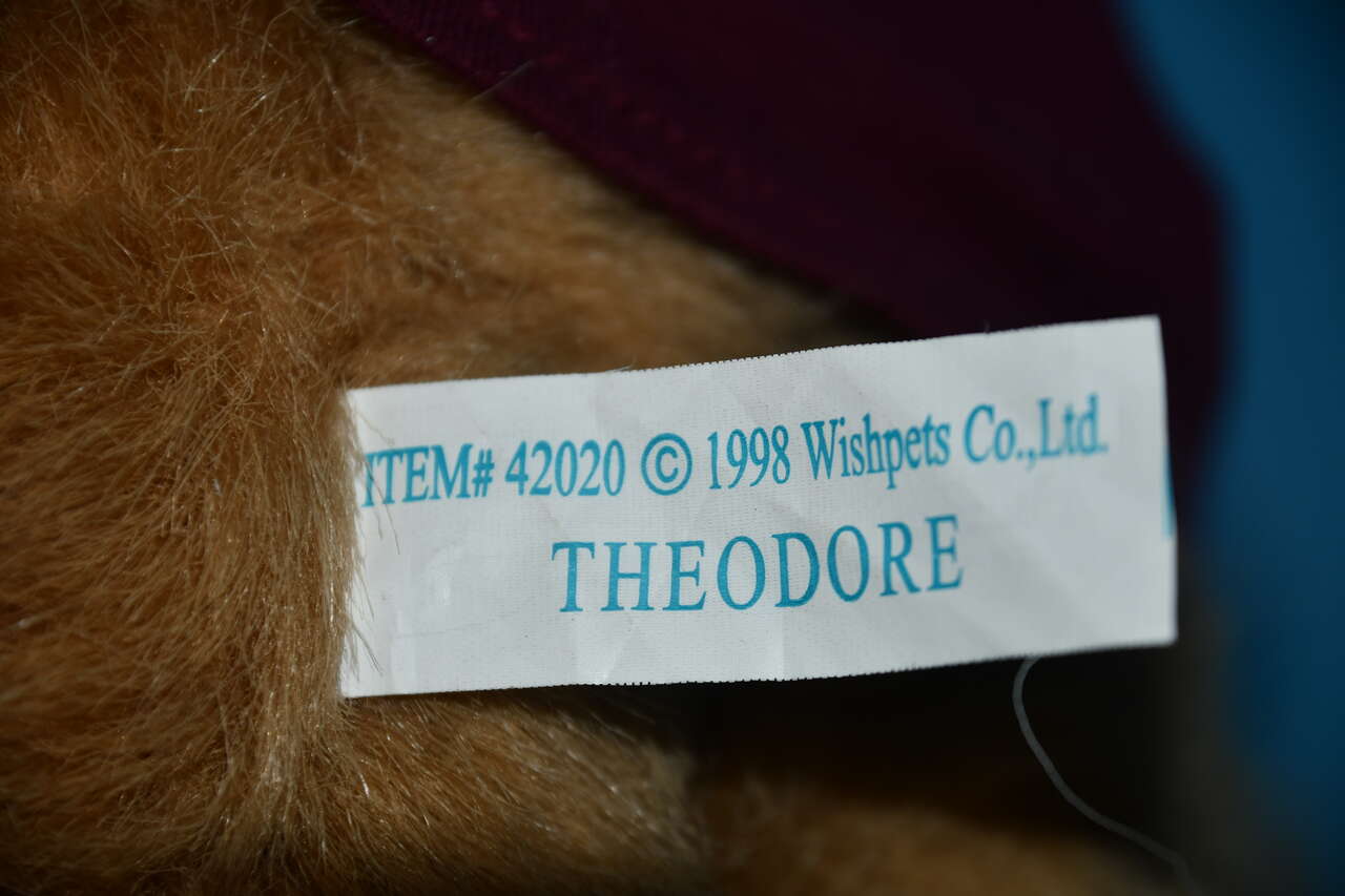 This VINTAGE 1998 "THEODORE" WISHPETS TEDDY BEAR with an "OLD NAUVOO" SHIRT is CLEAN! It is about 9" sitting. Our home is smoke free. Questions??? Please ask. We are located in Plain City. Cash only please.