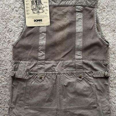 New. Costs over $100 if bought retail. Good for photography or fishing. A gift too big for me. Size medium but more like a large. Greenish gray. Made from 100% machine washable cotton with cotton mesh panels at yoke and back provide cooling ventilation. The vest is full-cut for comfort and practicality and has 15 pockets, including cargo pockets, pockets with weather-tight zipper closures, huge back pockets, pen/pencil pockets and roomy hand warmer pockets. A removable press Pass/ID holder is included.