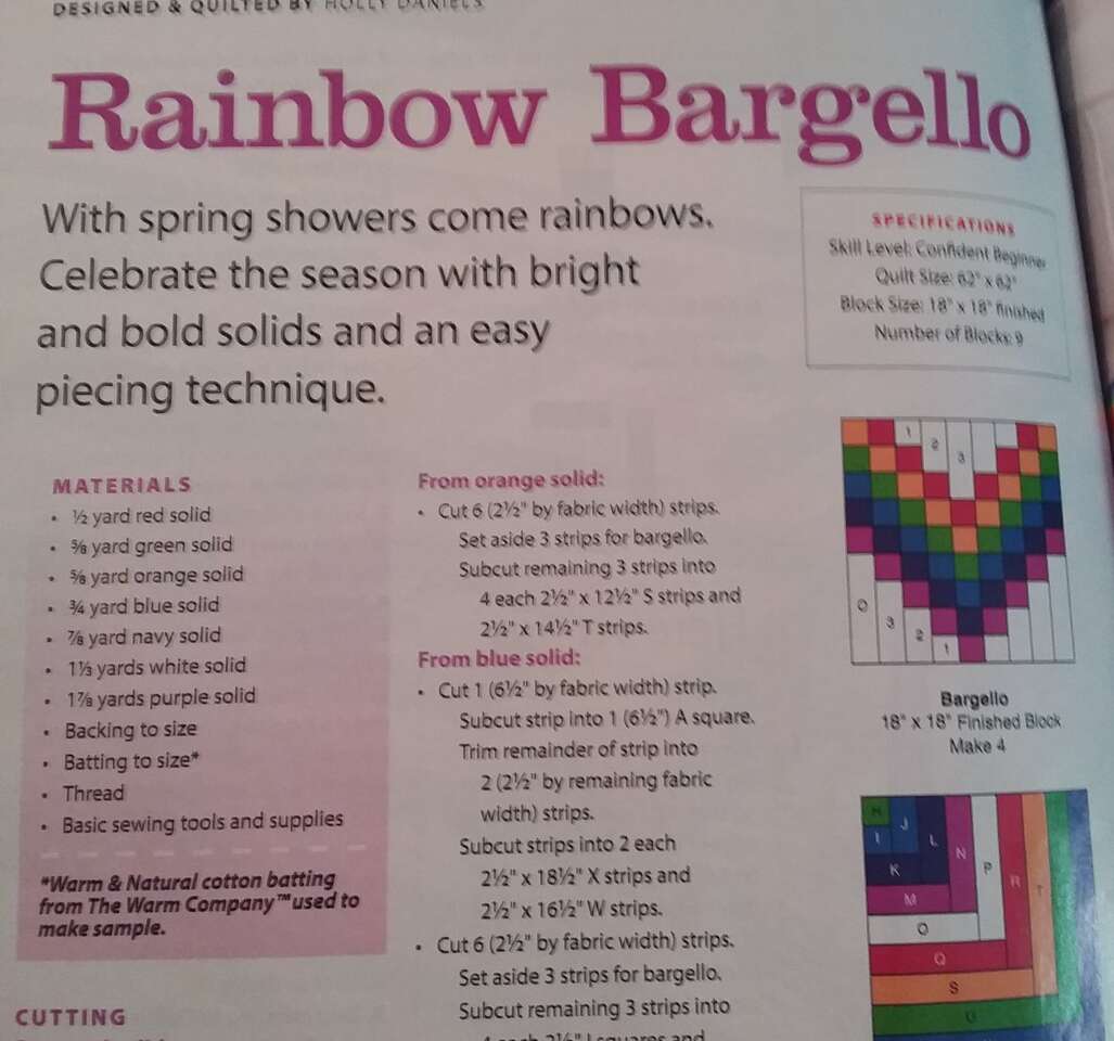 kit includes 6 beautiful colors of batik fabric plus white.. enough fabric to complete this Rainbow Bargello quilt top.....easy to follow full color directions...quilt top measures 62 inches x 62 inches.