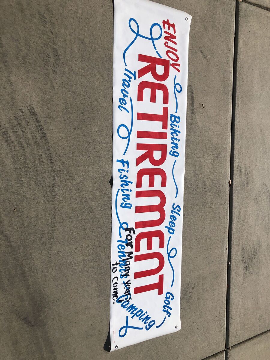 VenmoCelebrate your loved one's, friend's, coworker's, or even your own retirement with this GIANT all weather banner. The banner is 18x72" when unraveled. The banner material is an all-weather material. The printing is vibrant and colorful. It also has heavy-duty grommets in the corner to make it easier to put up.