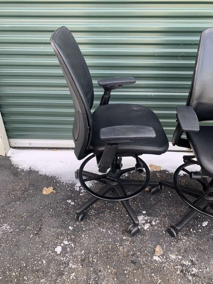 Venmo1 each STEELCASE BLACK LEATHER AMIA TASK STOOLS WITH ARMS VERY ADJUSTABLE. I HAVE 1 TASK STOOL LEFT