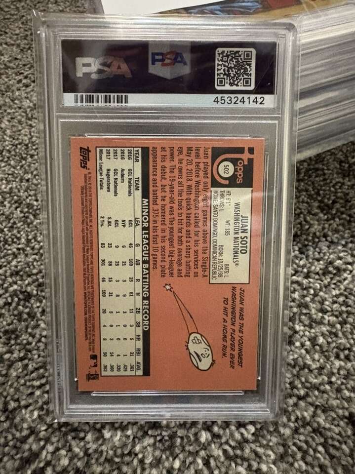 2018 Topps Heritage baseball card of Juan Soto PSA 10 GEM Mint 50 obo