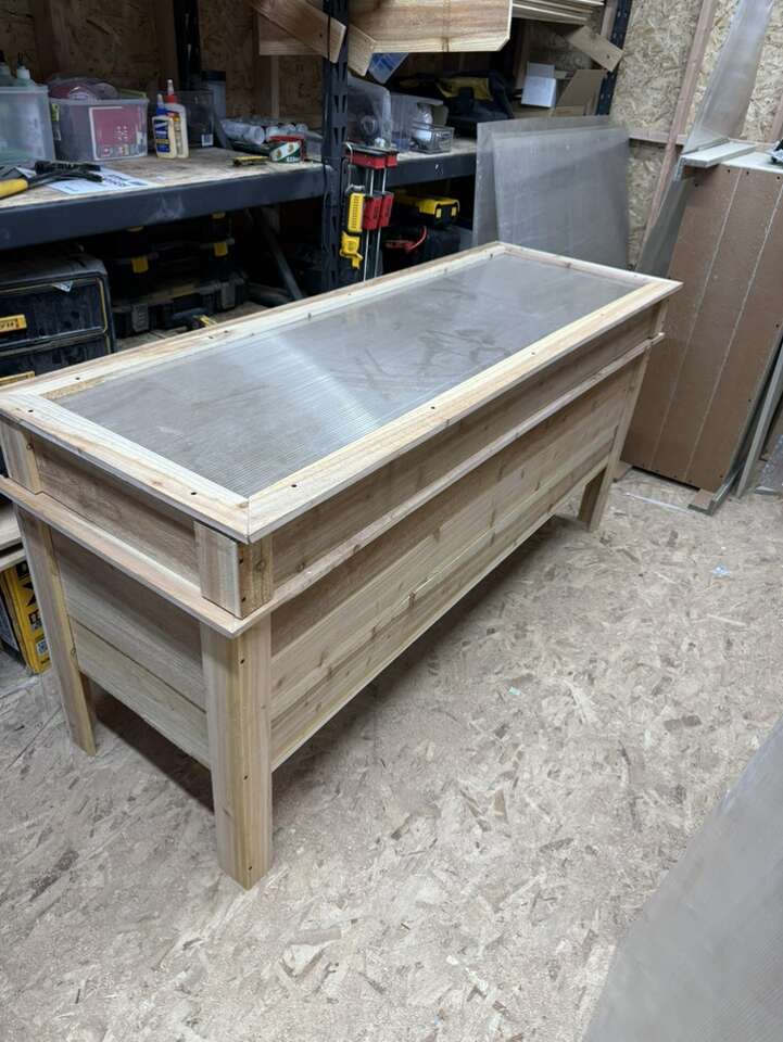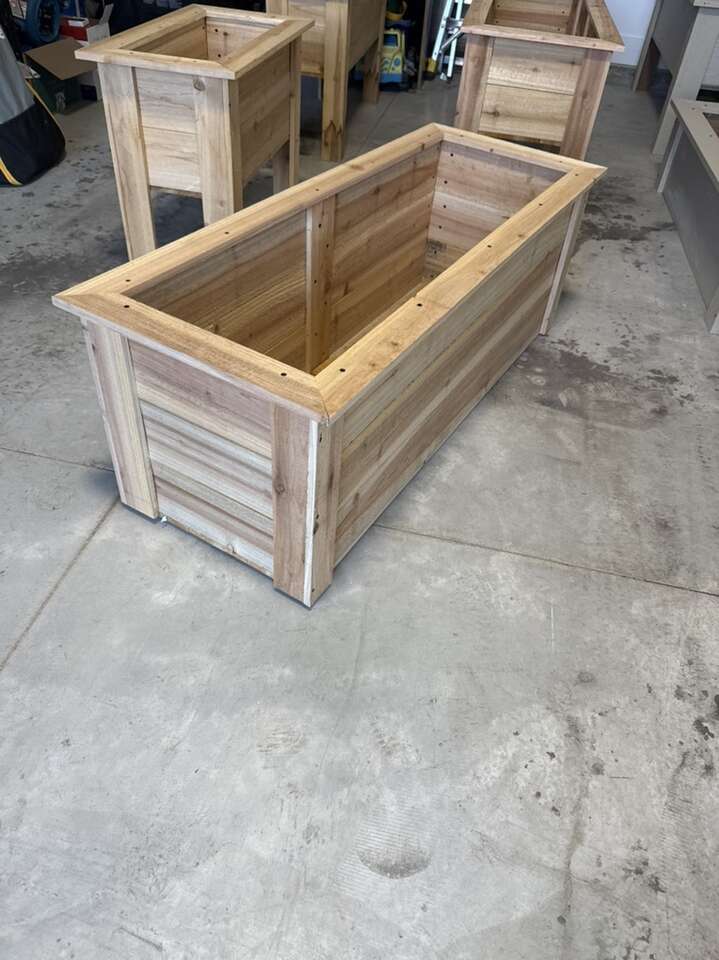 New planters built to order or have some available now. Parleys planters can be customized and even have options to add greenhouse lids etc. Picture has pricing for different common sizes. Can help with delivery.