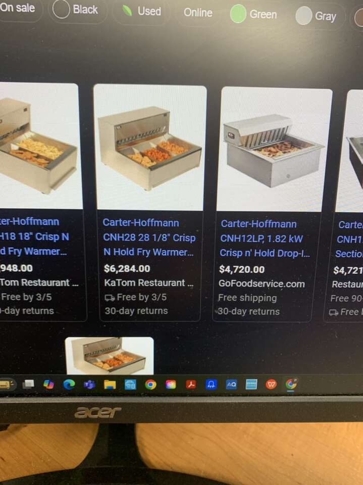 CARTER HOFFMANN Crisp and Hold fry Warmer electric 12o volts single phase .27''LX 17''W X17''H $1500 Price reduced