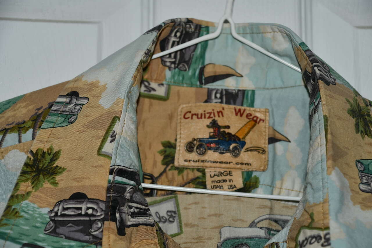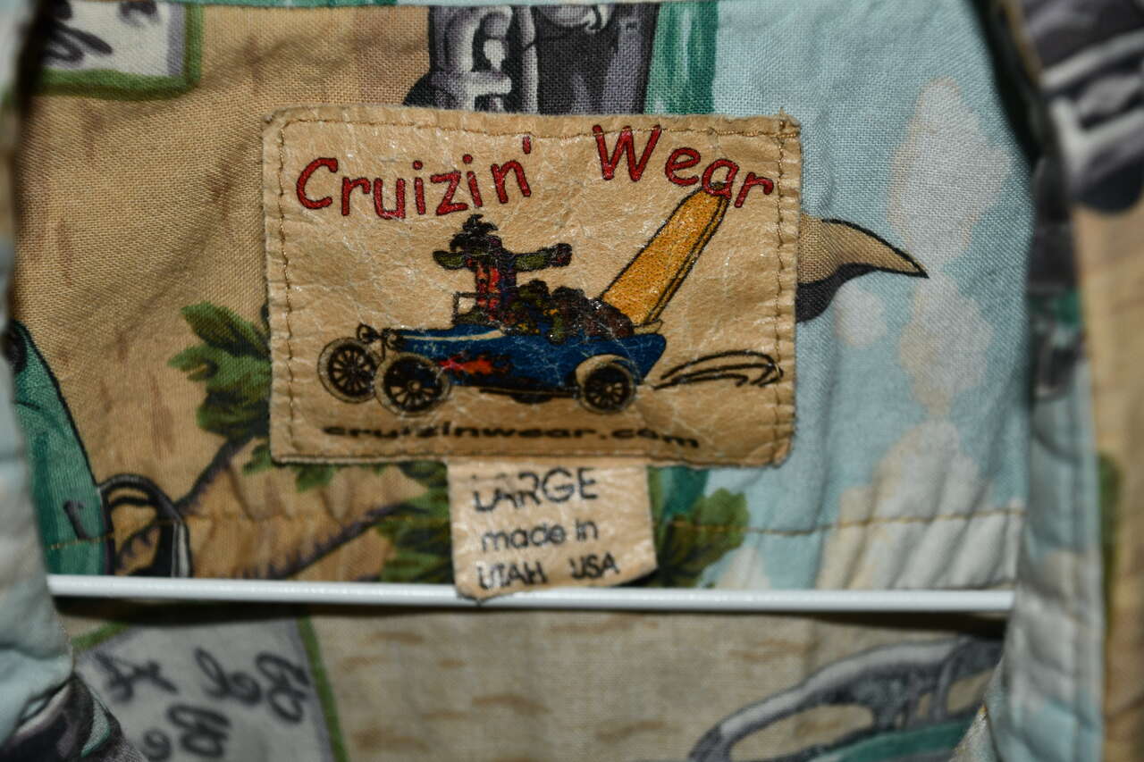 This VINTAGE MEN'S " CRUZIN' WEAR" SHIRT is size L. It was made in UTAH. It is about 26" pit to pit. It is CLEAN! Questions??? Please ask. We are located in Plain City. Cash only please.