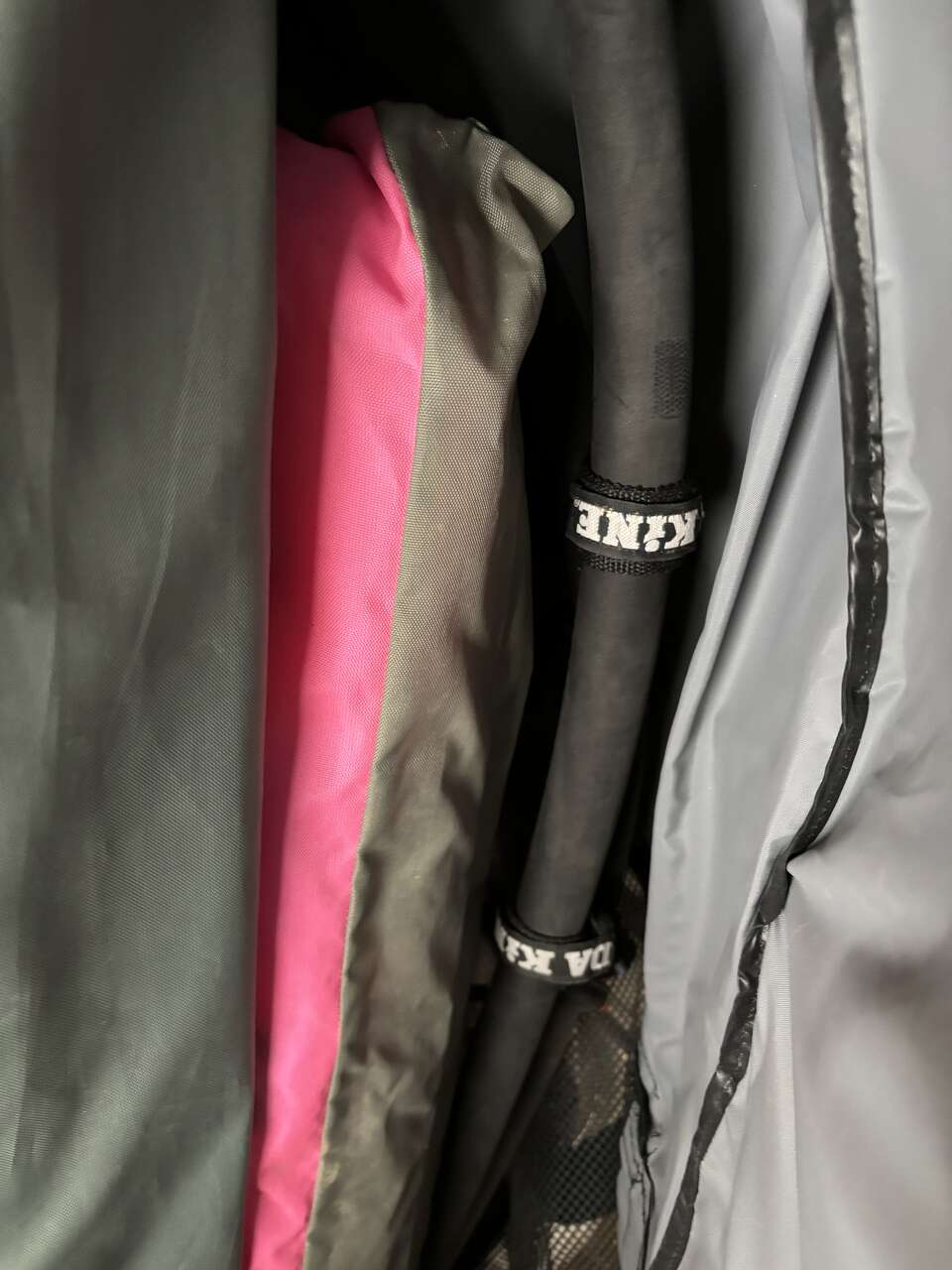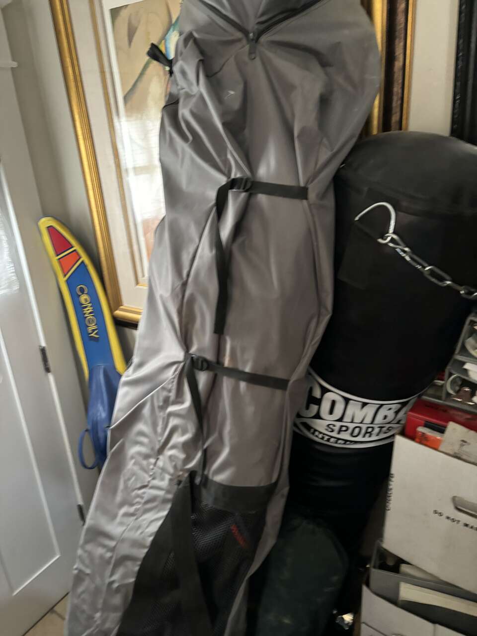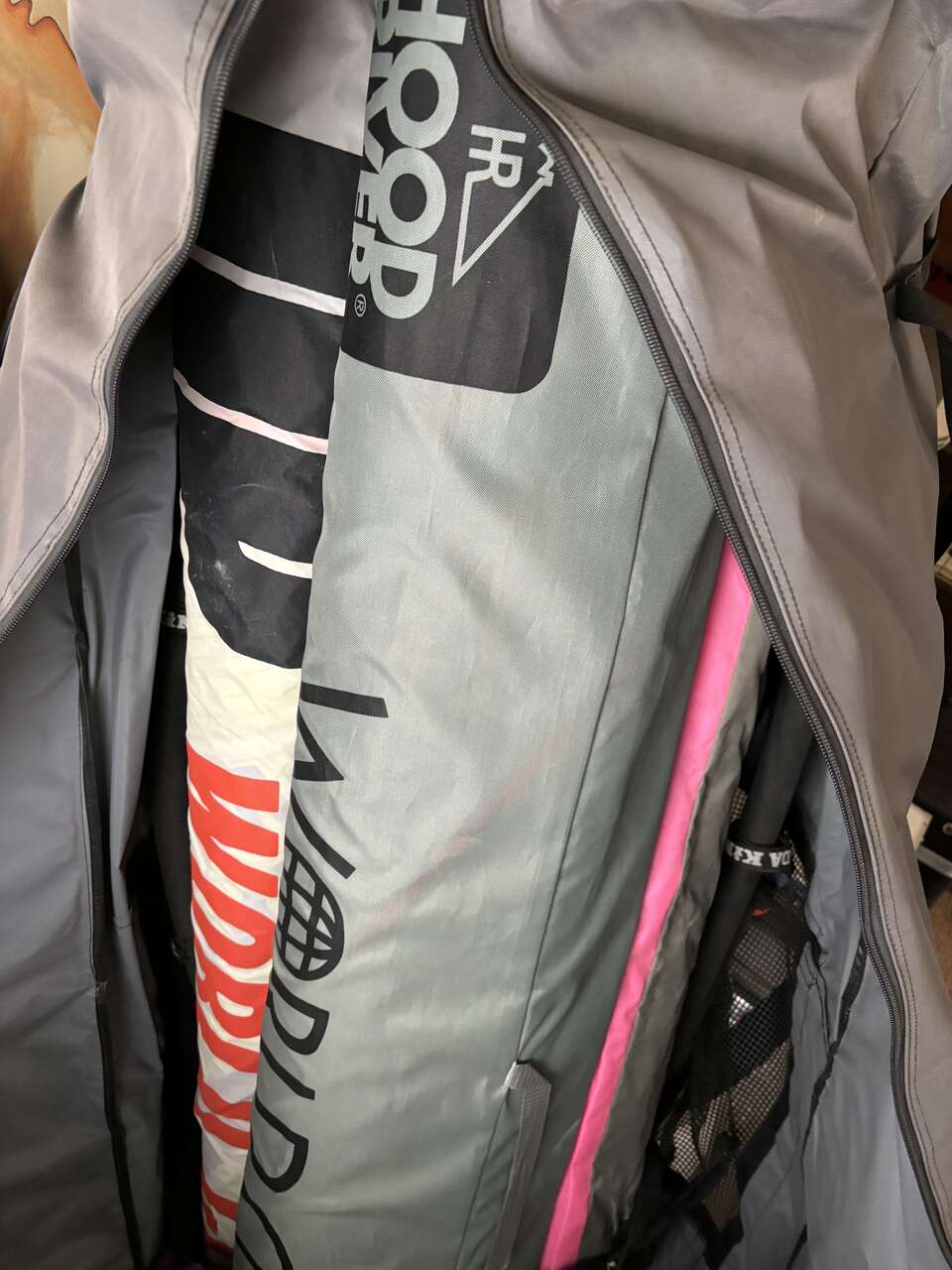 There are a few sails and accessories in bag, harness etc