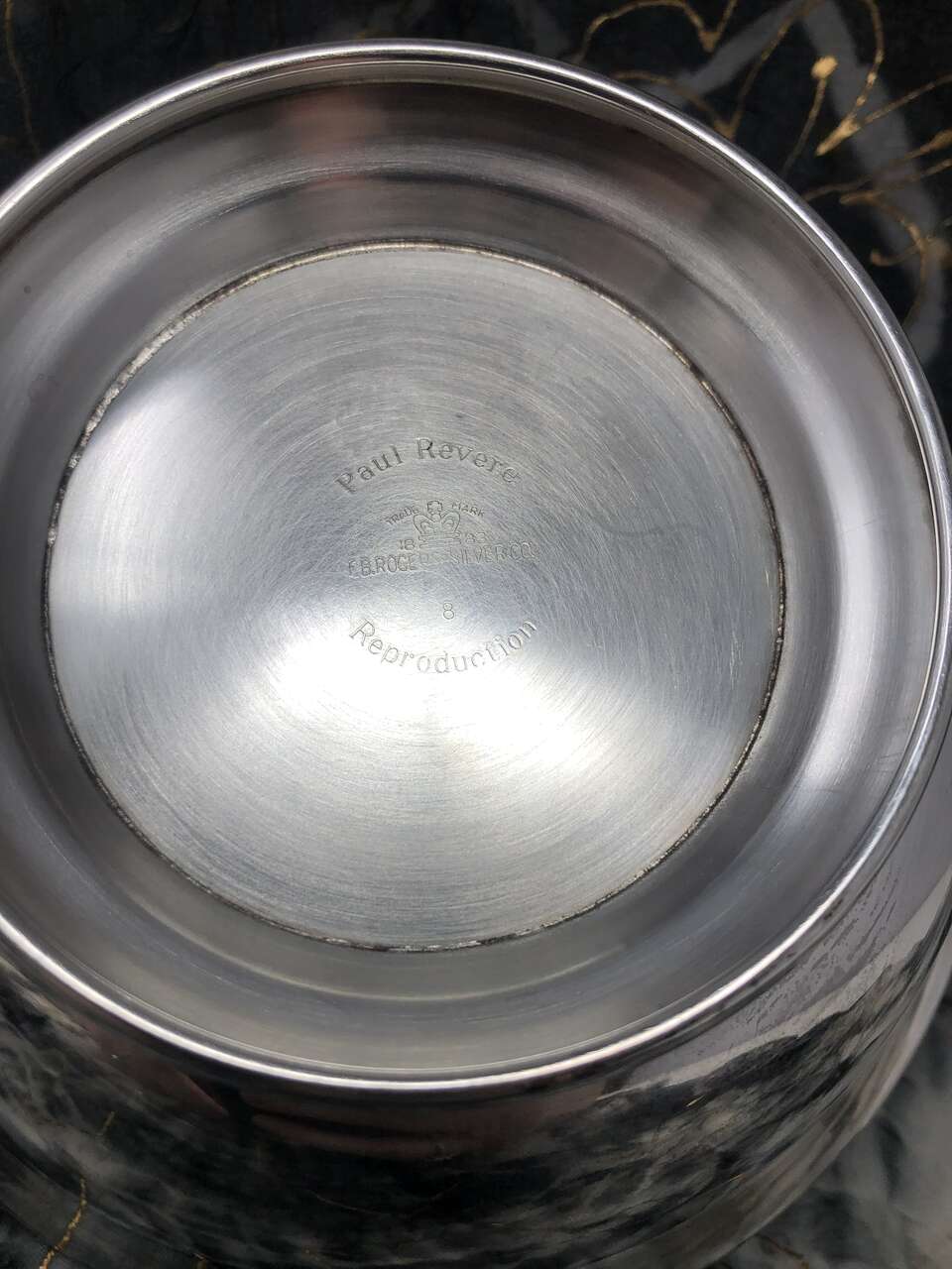 VenmoThis beautiful silver-plated Paul Revere reproduction will bring a touch of pizzazz to any table. It measures 8x8x3.5" (the base itself is 4 1/8" wide). We've cleaned it well, but some age hasn't come off. Those particular spots are shown in the photos.