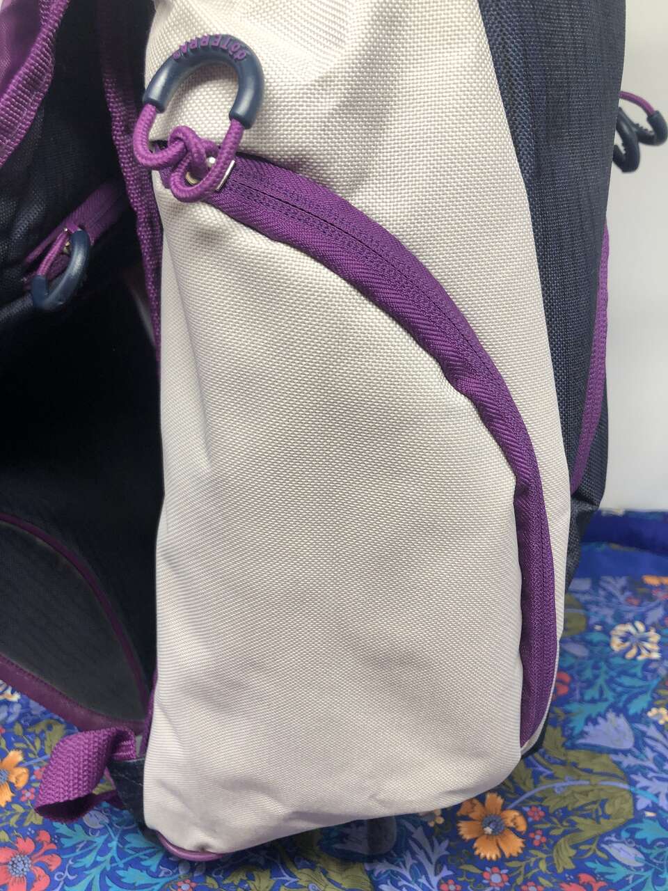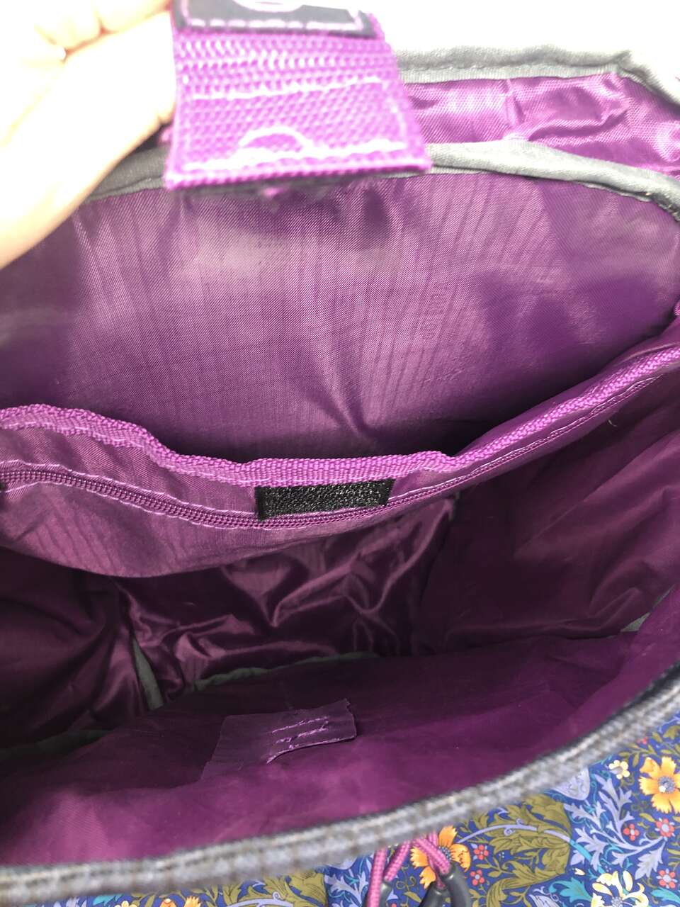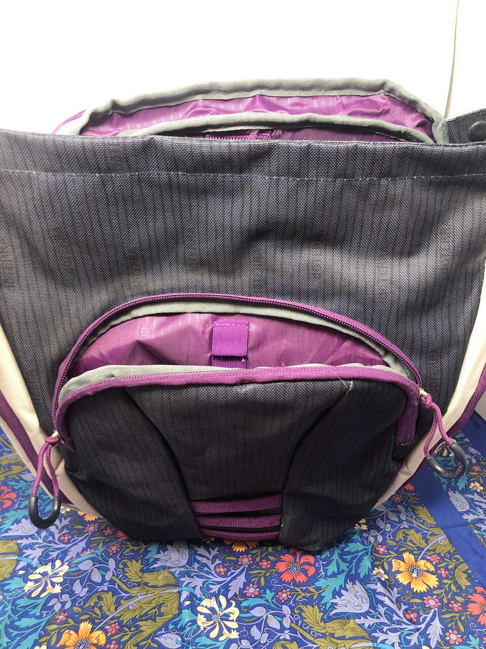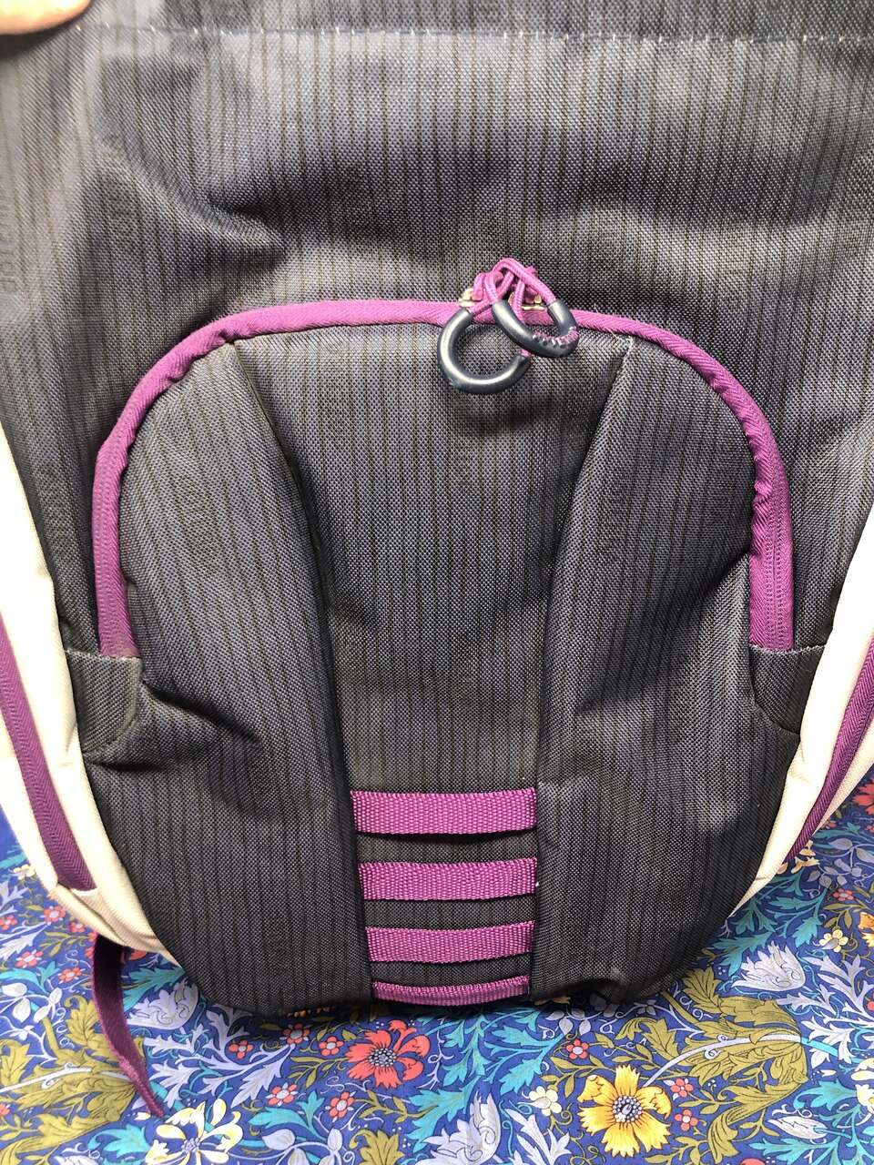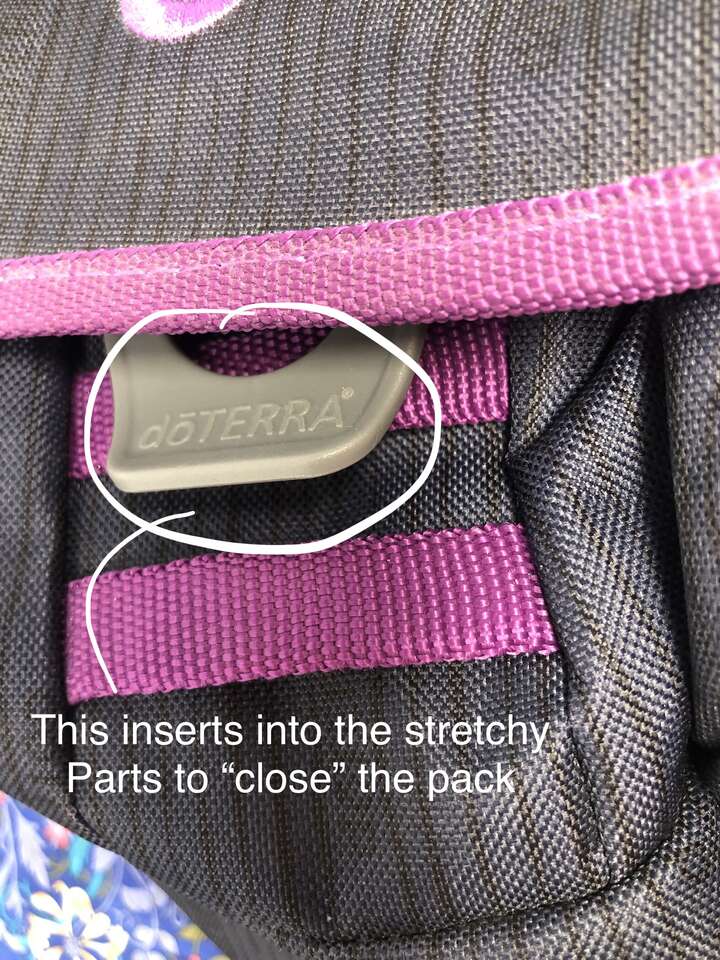 VenmoThis backpack is sturdy and unique. It has 8 pockets: the main area which also includes a small zipper pocket and a laptop area, a smaller front pocket that also includes 3 pen holders and 2 small pockets, and lastly the small cover zipper pocket. It also comes with a padded area for your lower back, doTERRA branded design features, and adjustable straps. Plus, the plastic closure adds a unique touch to how the backpack closes. You simply slide the grey piece in between 2 of the stretchy purple straps on the front.