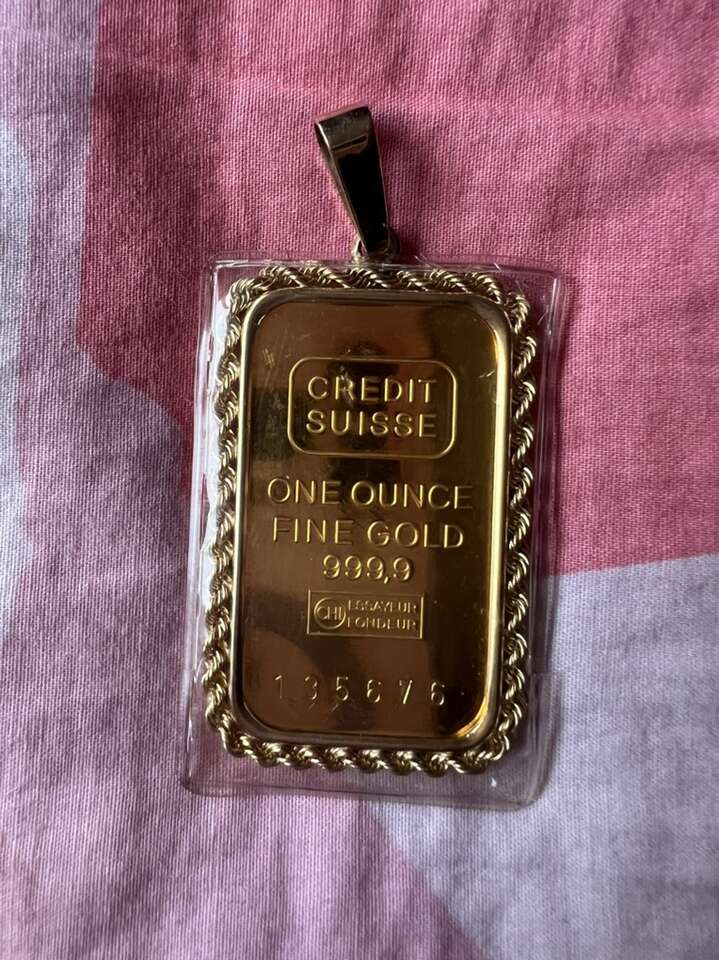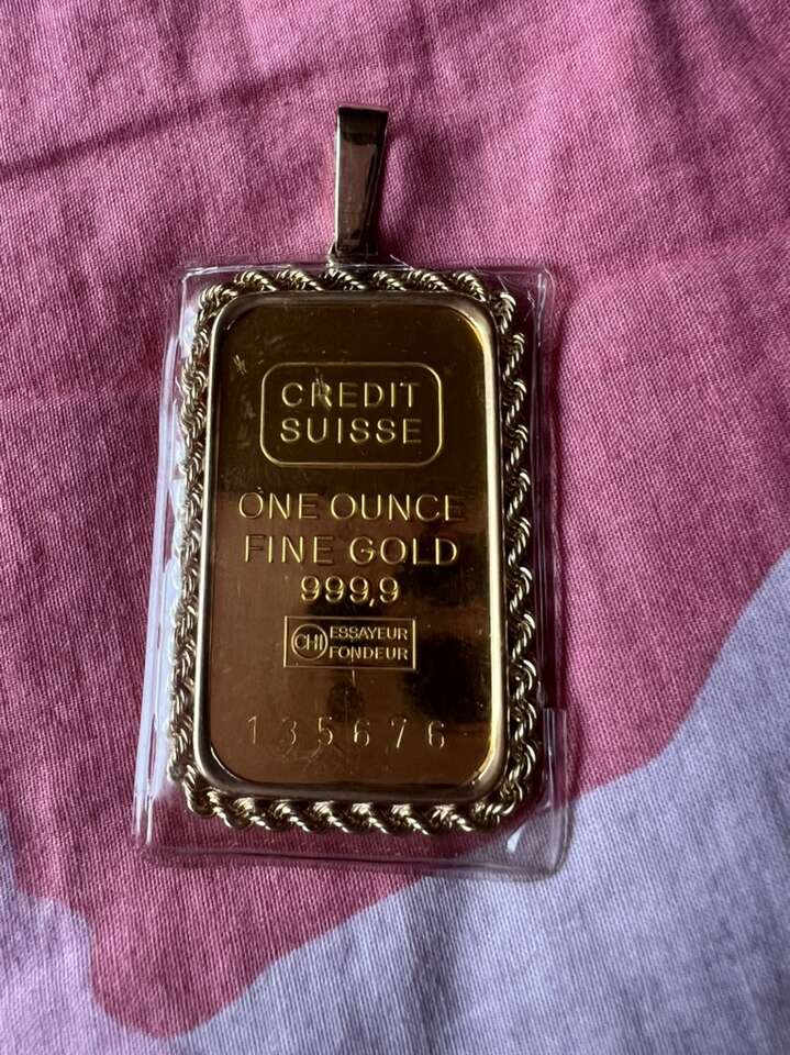 For sale 1 oz suiss credit whit bezel..vintage suiss ceedit..999 fine gold ..whit 14 k bezel. Asking price. 5600$. for more info call or text