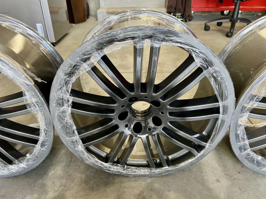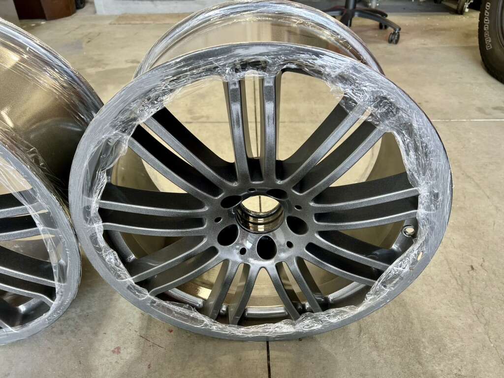 Selling an OEM set of Mercedes Benz wheels that have been professionally refinished (powder coated) in gun metal. These wheels were off a launch edition 2007 S550. These were used on a few different Mercedes models, including the S600. They’re OEM, just refinished, and have never been mounted.