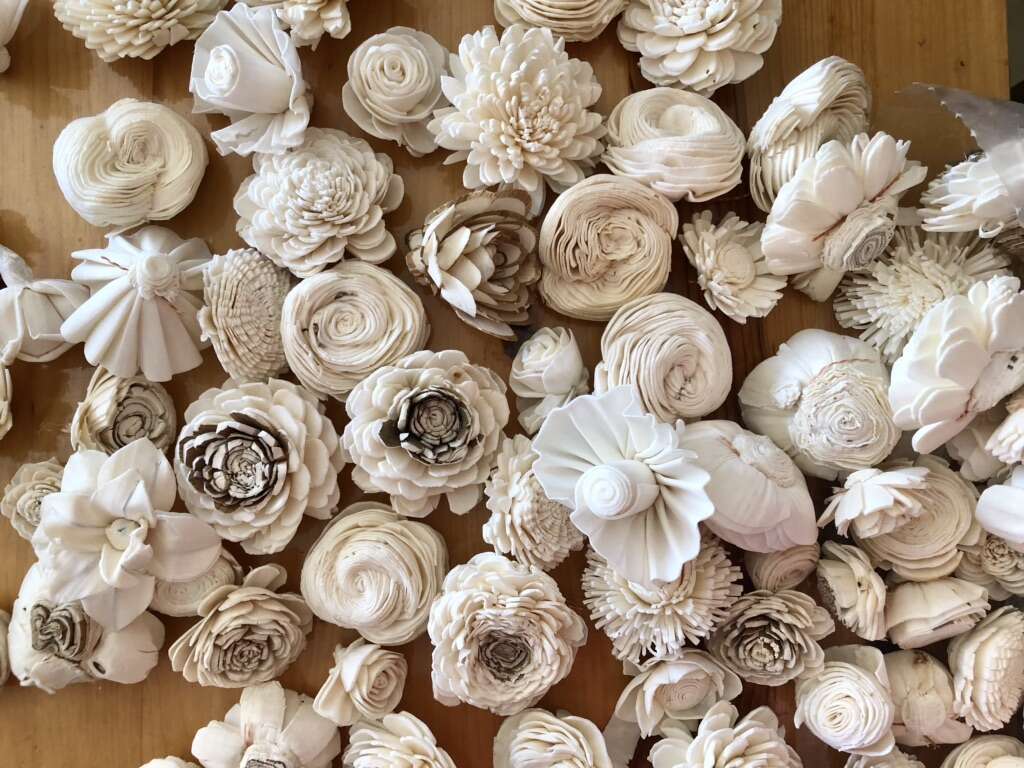 This was such a fun and simple project that I did with 7-11 year old kids and some folks at the assisted living! From set up to tear down it took about an hour to help about 20 people in making these. I bought bulk and want to pass on the savings: $1 each for the hearts and 3/$1 flowers. I can also help with instructions and give you the tiny bit of glycerine you will need.