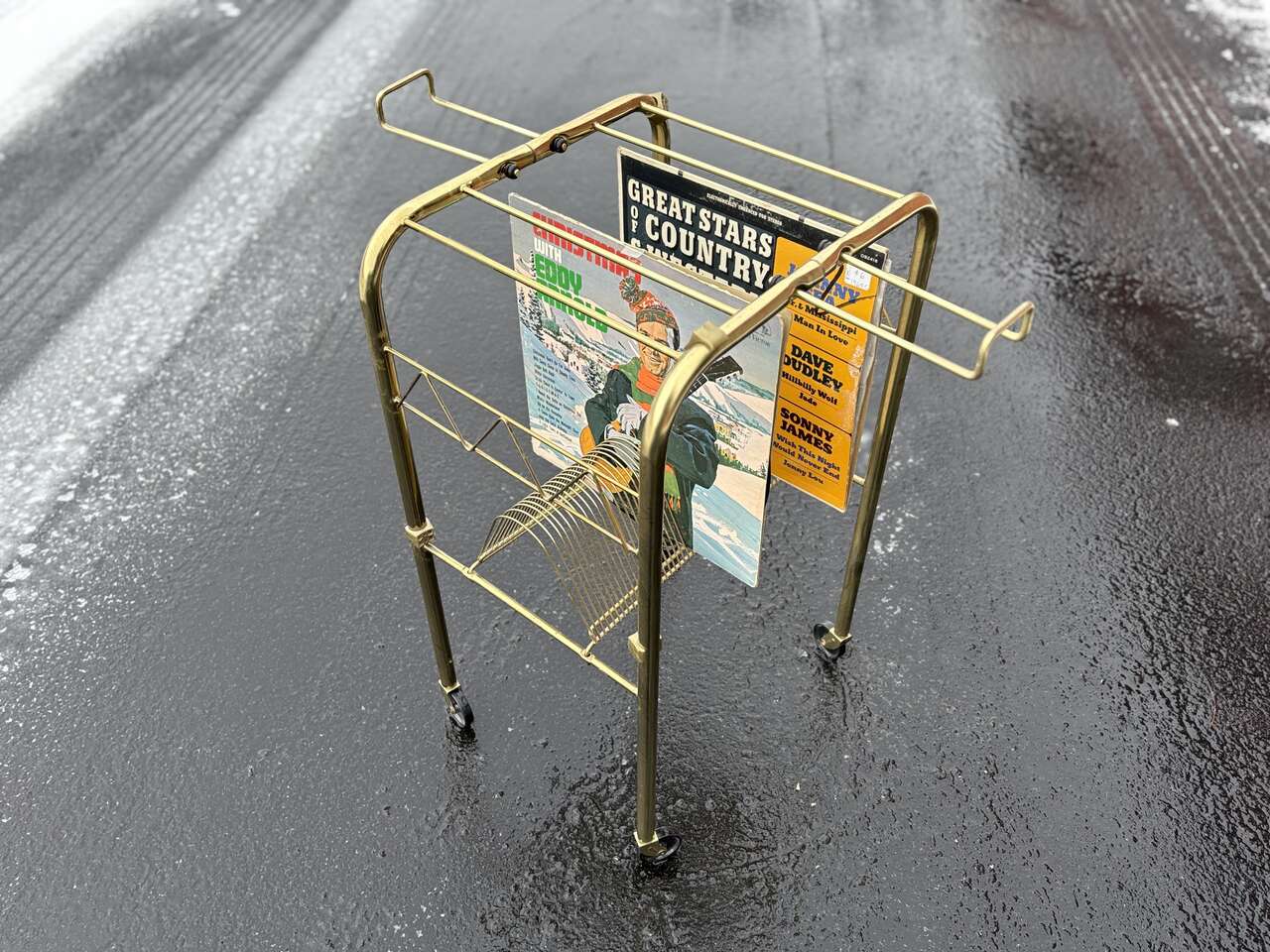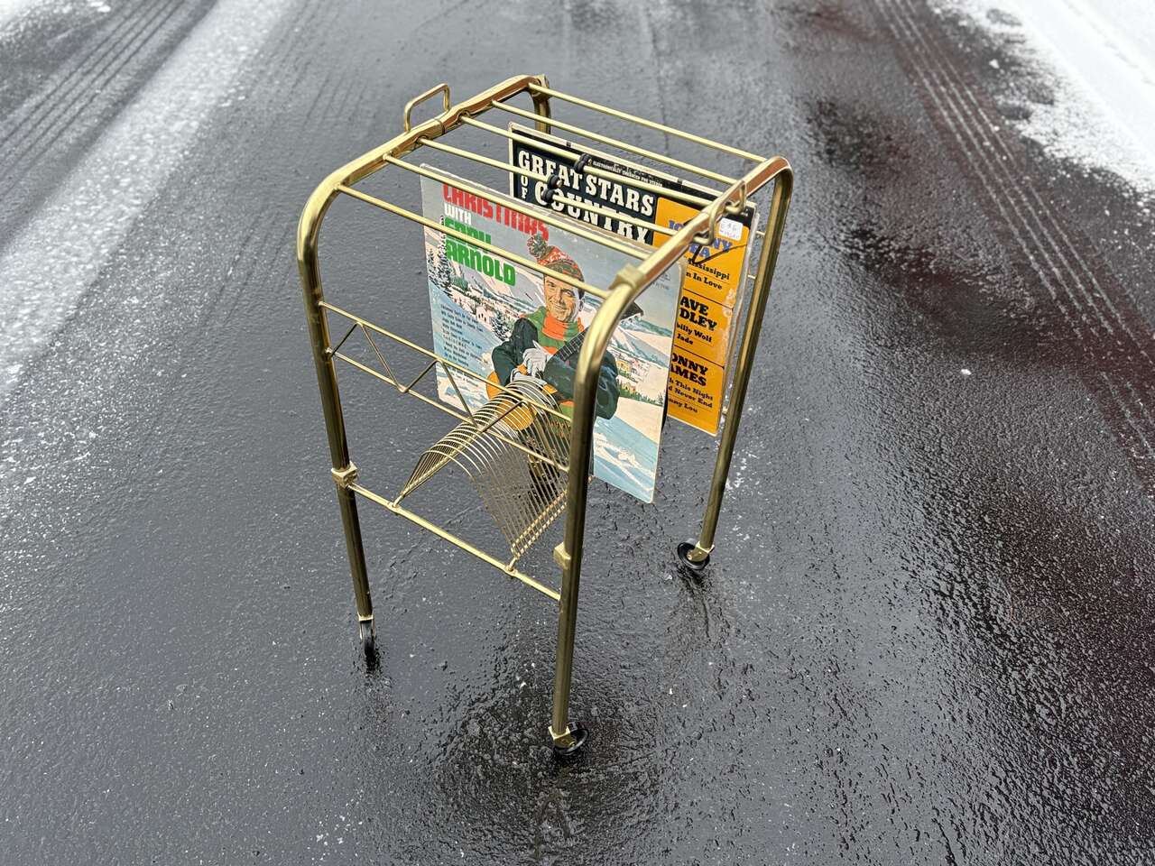 VenmoVintage rolling record cart Vinyl LP storage and display Mid Centyet Modern MCM Approx dimensions: 13"Deep x 16 wide x 27" tall.
